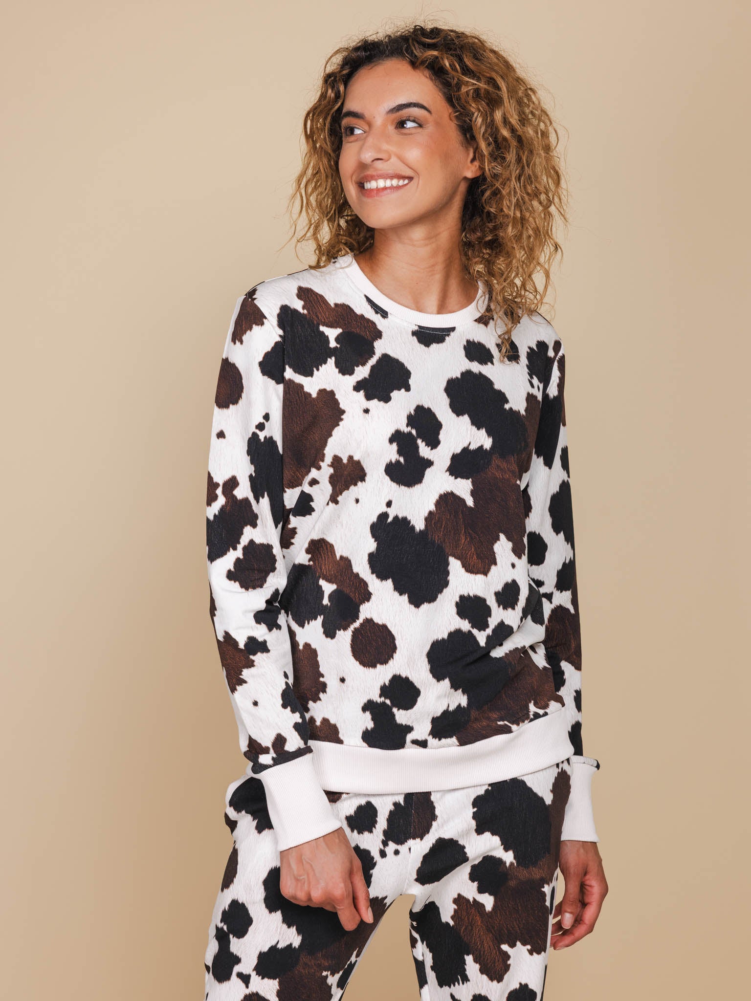 Platz da, langweilige Looks. Dieser Kuhfell-Print ist modern, weich, nachhaltig und selbstverständlich tierfreundlich – aus Bio-Baumwolle gefertigt. Drinnen, draußen oder im Bett: Hier gilt nur eine Regel. Alles kann, nichts muss.