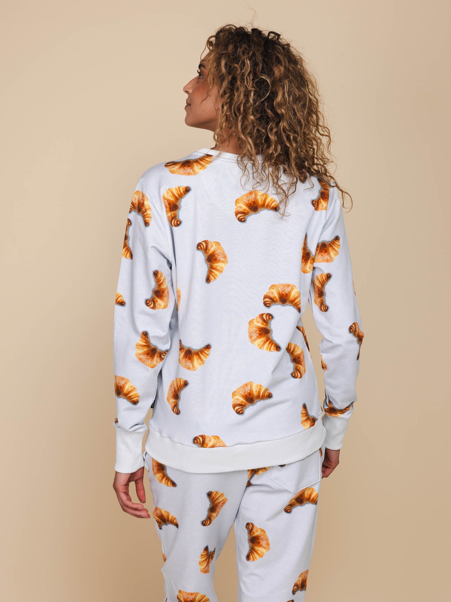 Damen Pullover und Hose mit Fotodruck aus 95 % Bio-Baumwolle, 5 % Elasthan.