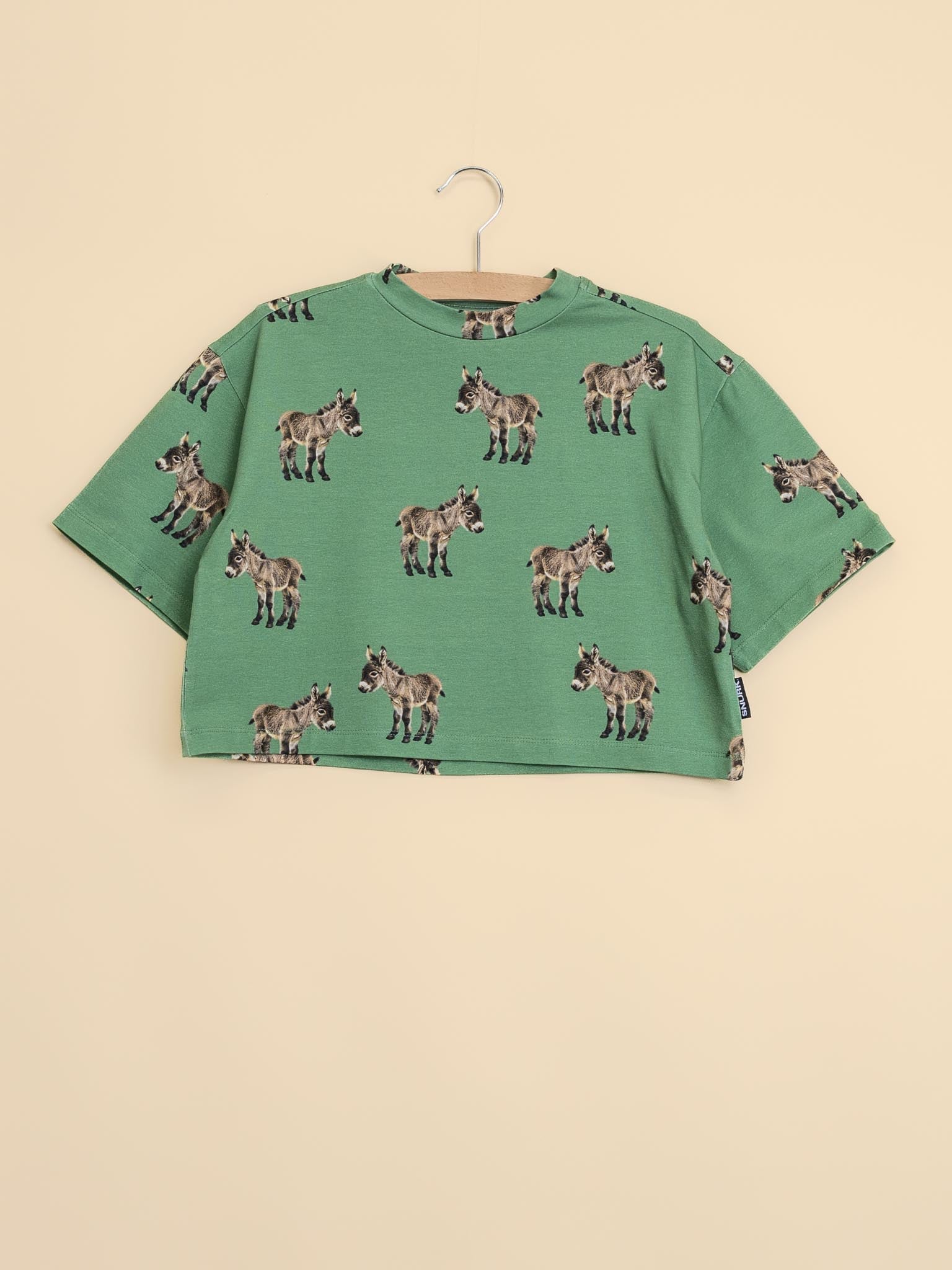 Das Set ansehenCropped T-Shirt voor kids gemaakt van 95% biologisch katoen, 5% elastaan.