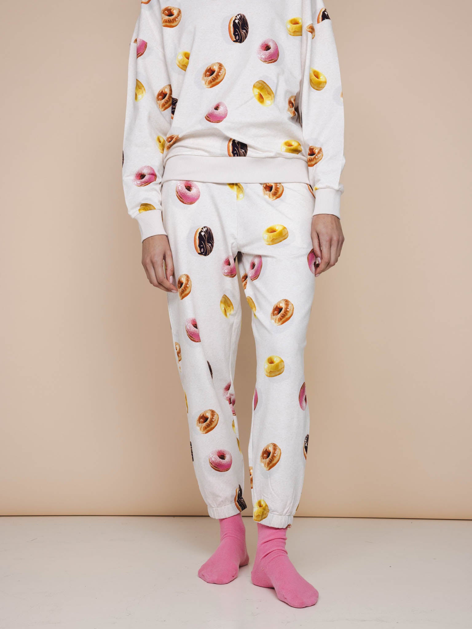 Set aus Unisex-Pullover und Hose. Der Pullover hat eine lockere Passform und einen Rundhalsausschnitt. Die Hose hat einen elastischen Bund mit Kordelzug und tiefe Taschen.
