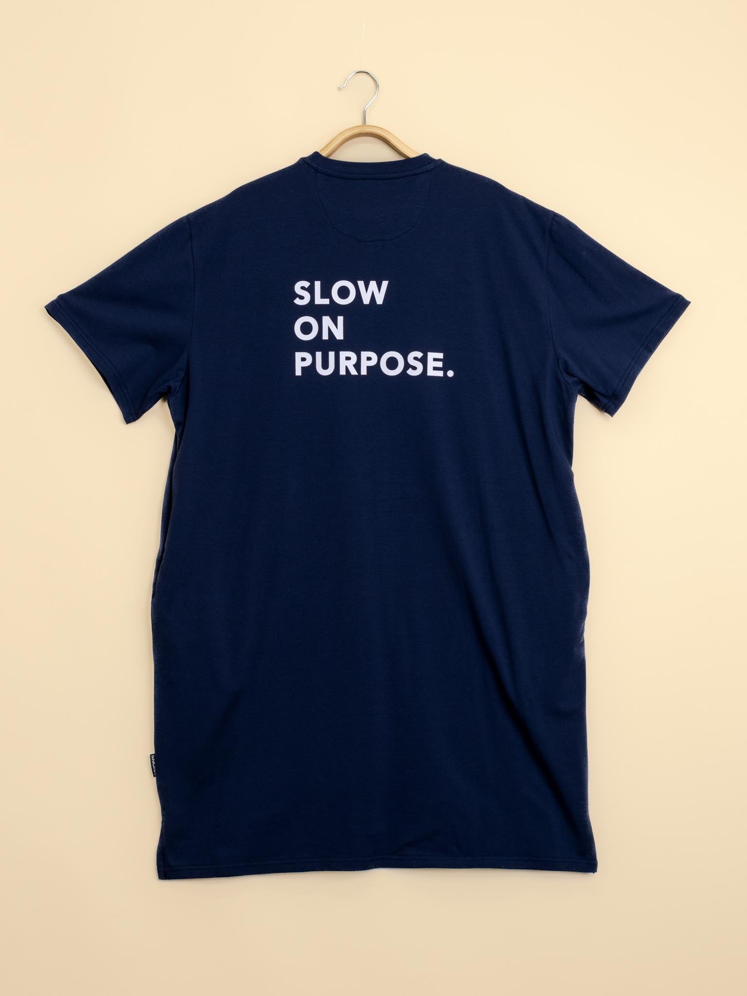 Nichts so luxuriös wie Ihr eigenes Tempo wählen kann. In einer Welt, die immer schneller zu sein scheint, ist dies eine bewusste Verzögerung. "Slow on Purpose"Groß auf dem Rücken, als Erinnerung für sich selbst und Jeder, der dir her rennt. Aus weicher Bio -Baumwolle hergestellt und Entwickelt, um bequem zu verlangsamen. Erhältlich in Marineblau, Rot oder Hellgrau.