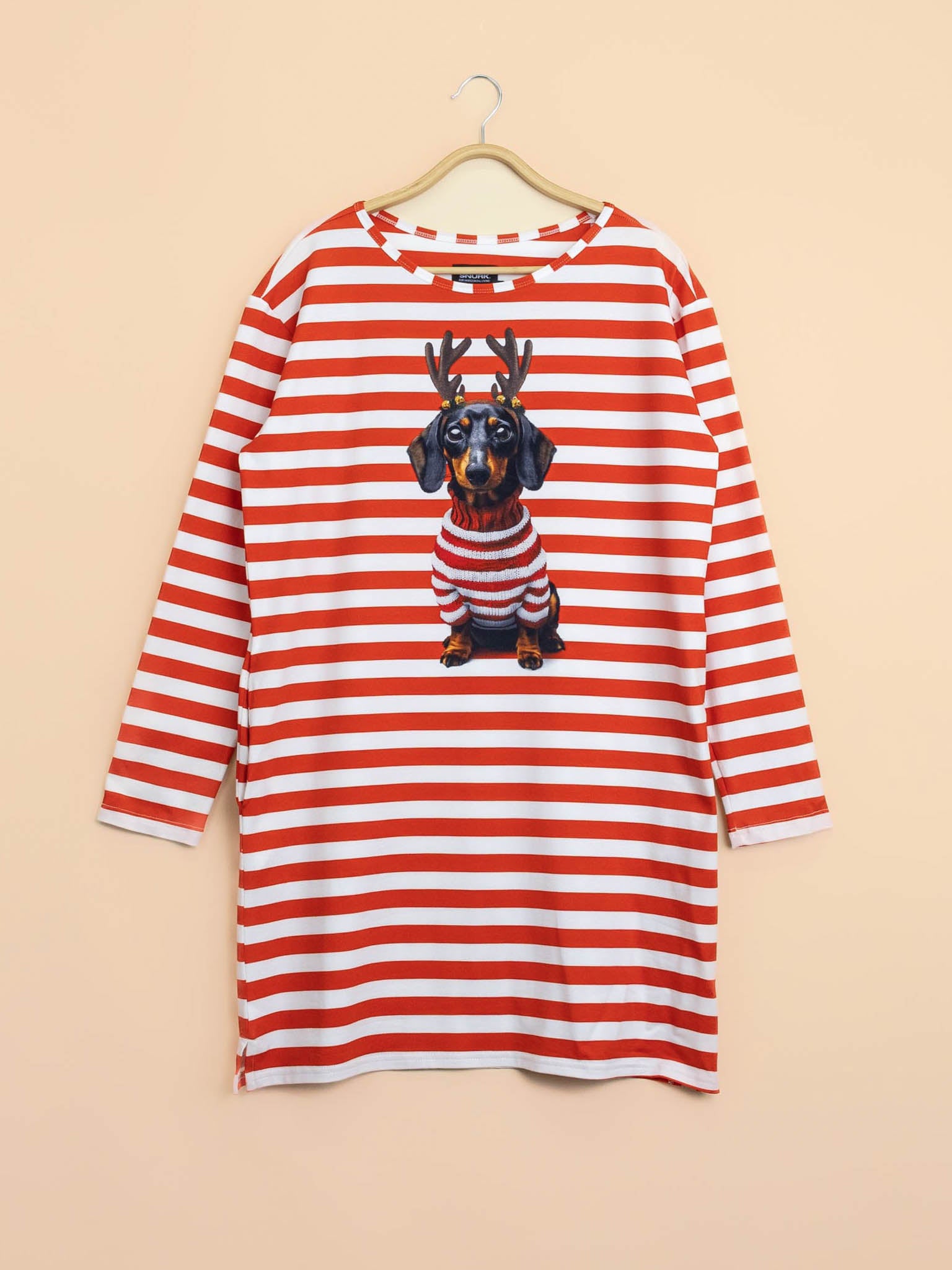 Rudolph kann packen, weil hier ist Pierre und Er ist bereit für Weihnachten. Unser süßer Dachshund trägt einen rot-weiß gestreiften Pullover und Ein festliches Rentier -Demedem. Wirklich Weihnachten mit einem SNURK-Twist. Hergestellt aus wunderbar weichen Bio -Baumwolle. Sie gewähren allen unter dem Weihnachtsbaum so viel Komfort.