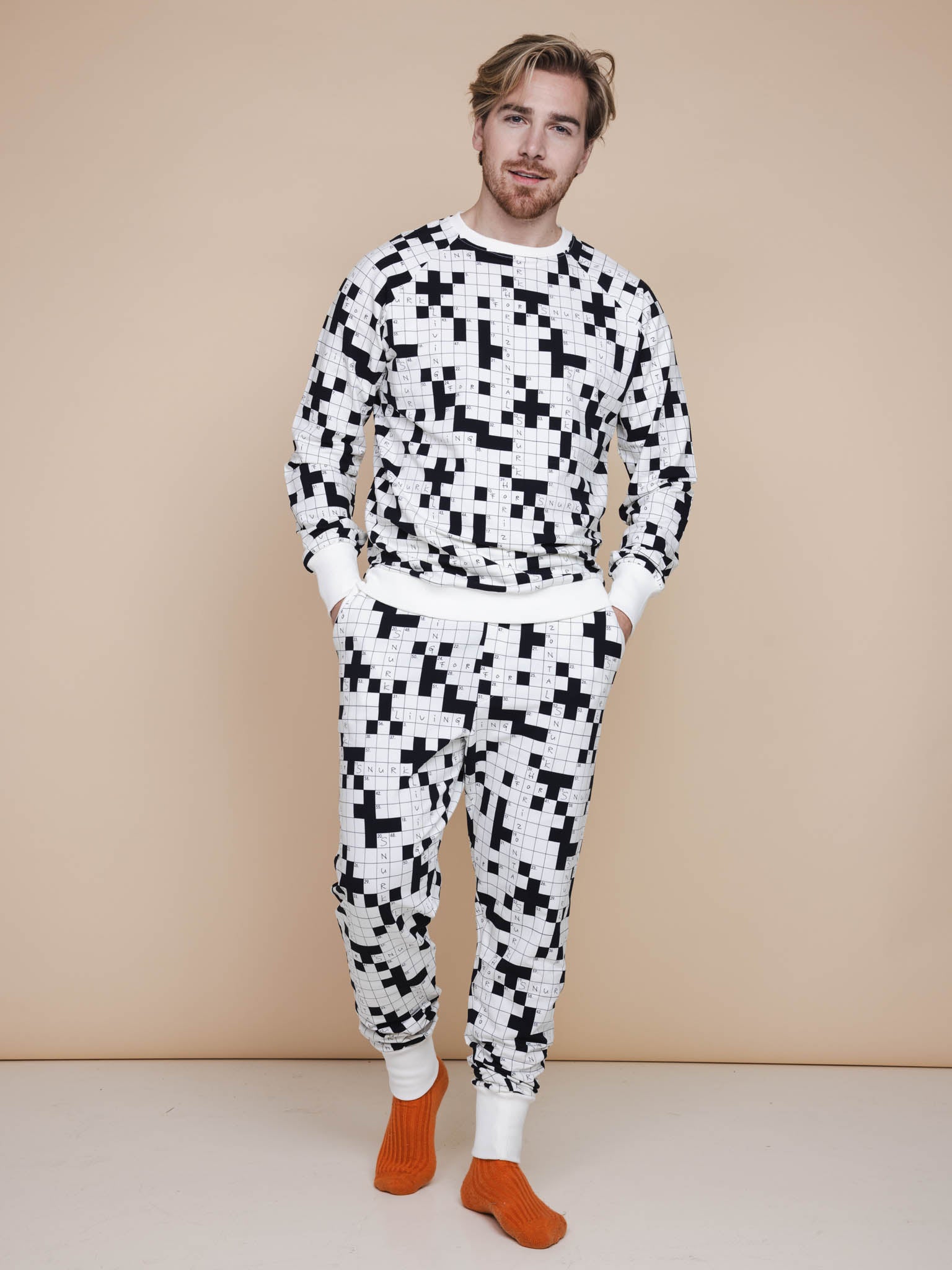 Puzzling has never been so relaxed. Zwart-white, sleek and playful at the same time: this crossword print is good for your head and your mood. Certainly if it is printed on our comfortable and soft organic stretch cotton. 2 Horizontal: the nicest sleep brand (five letters).