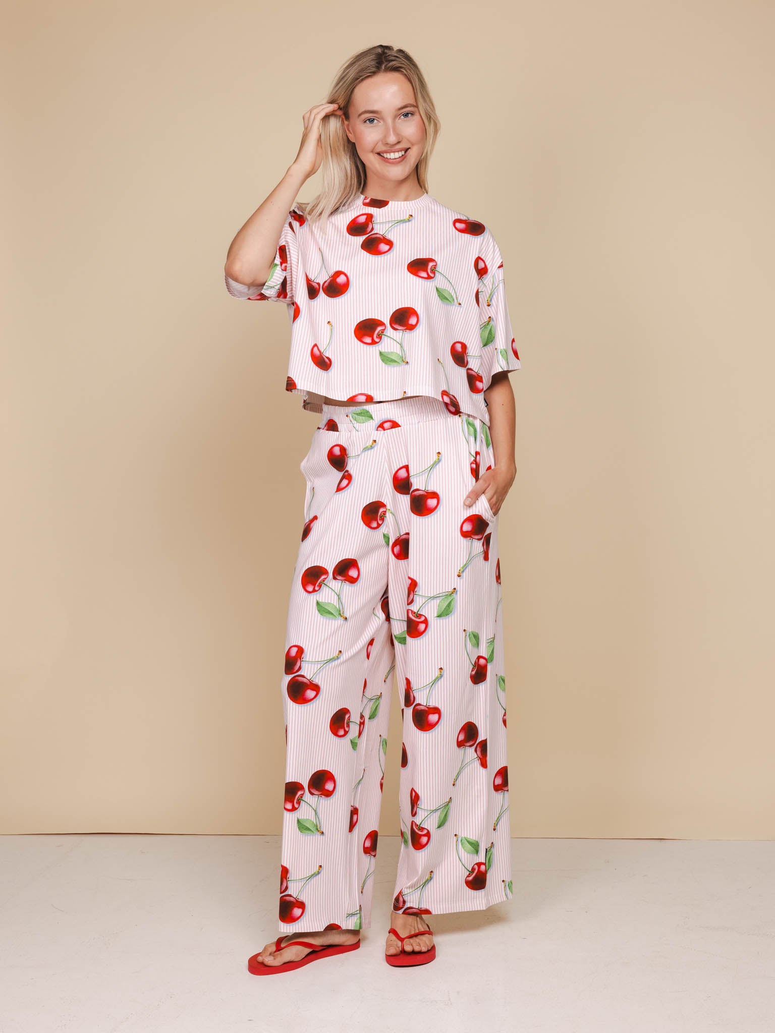 Mon Cherry Cropped T-shirt and Wide trousers set Women