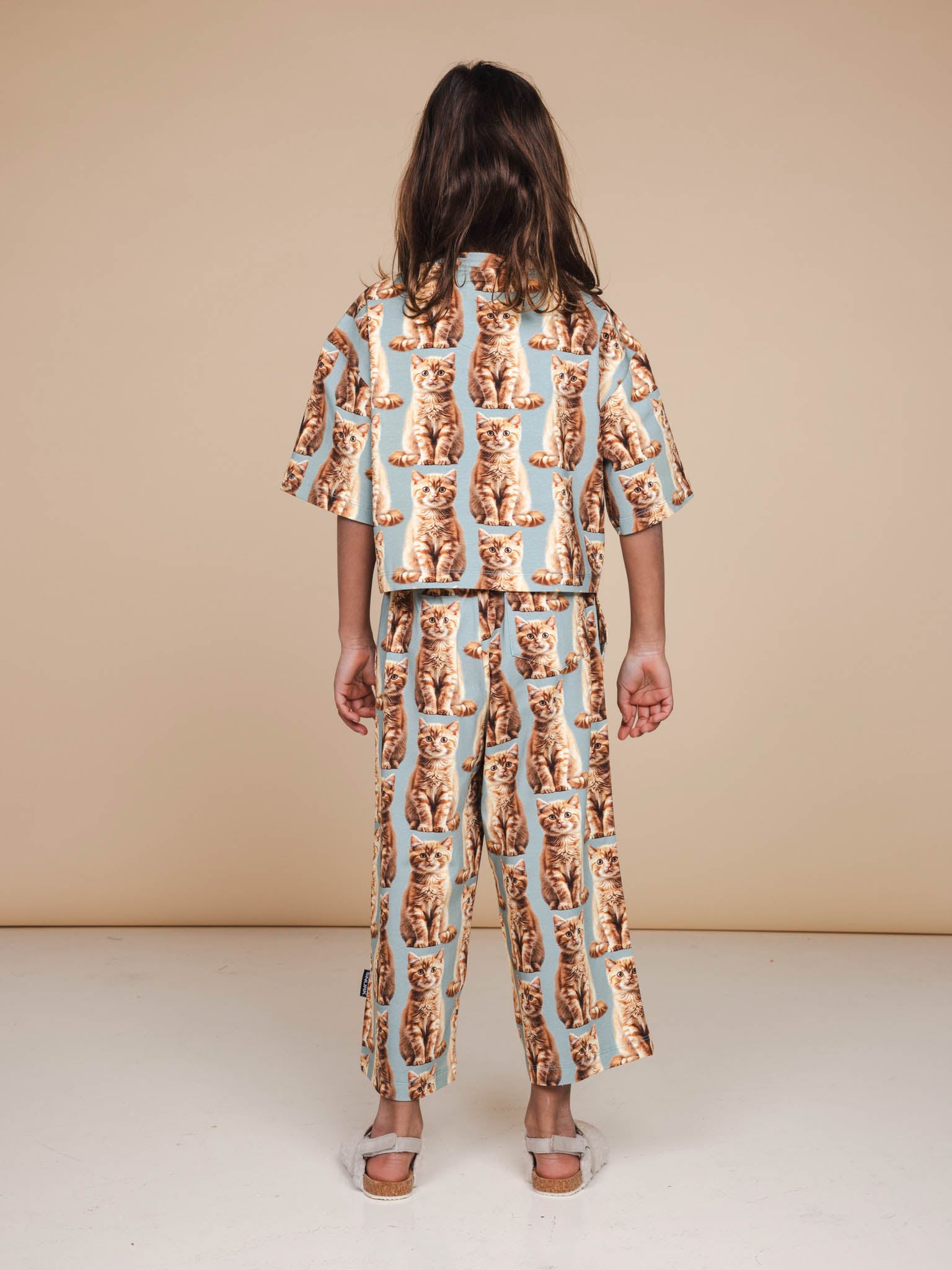 They say that cats have nine lives. Bowie Lives them all at the same time, on your pajamas. This all-over print of our red-haired cat is stubborn, charming and irresistible cuddly. Made from super soft organic stretch cotton, in a gray jade green. Prrrrrrrrijlig, right?