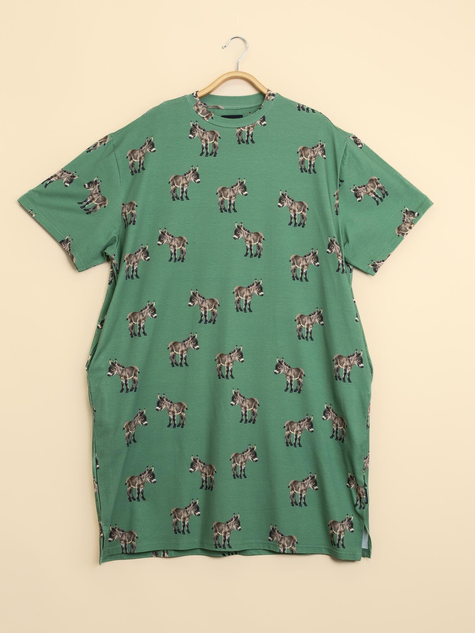 A herd of fluffy baby donkeys grazing on a soft green background. Sweet, cheeky, and full of character—just the way you like it. Made from soft organic stretch cotton. So comfy, you’ll stubbornly refuse to go anywhere else. Staying in, then? Hee-haw!