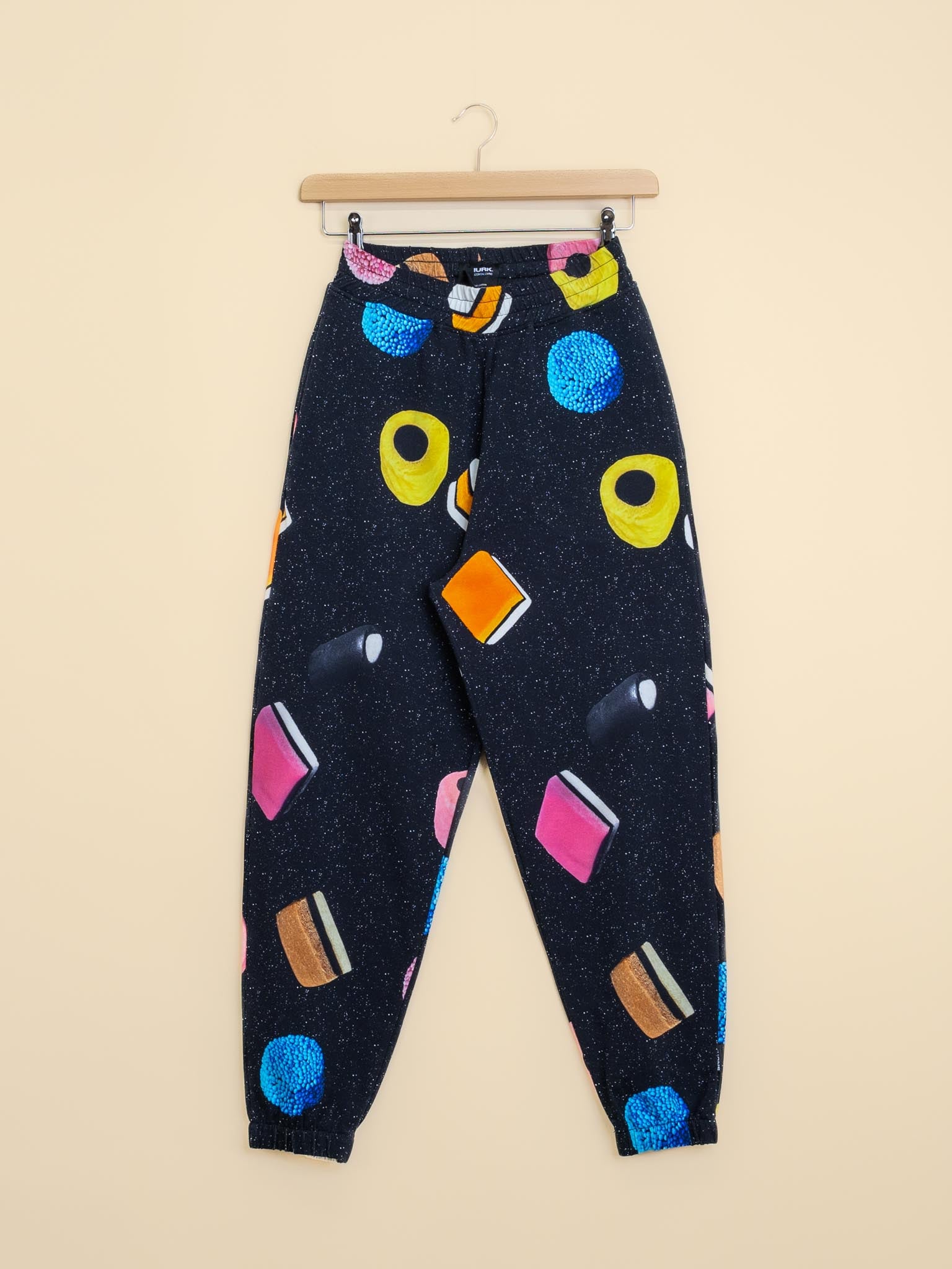 Soft stretch pants, deep pockets, elastic waistband with drawstrings, elastic at the legs, to wear indoors or outdoors, day and/or night, it's your party!