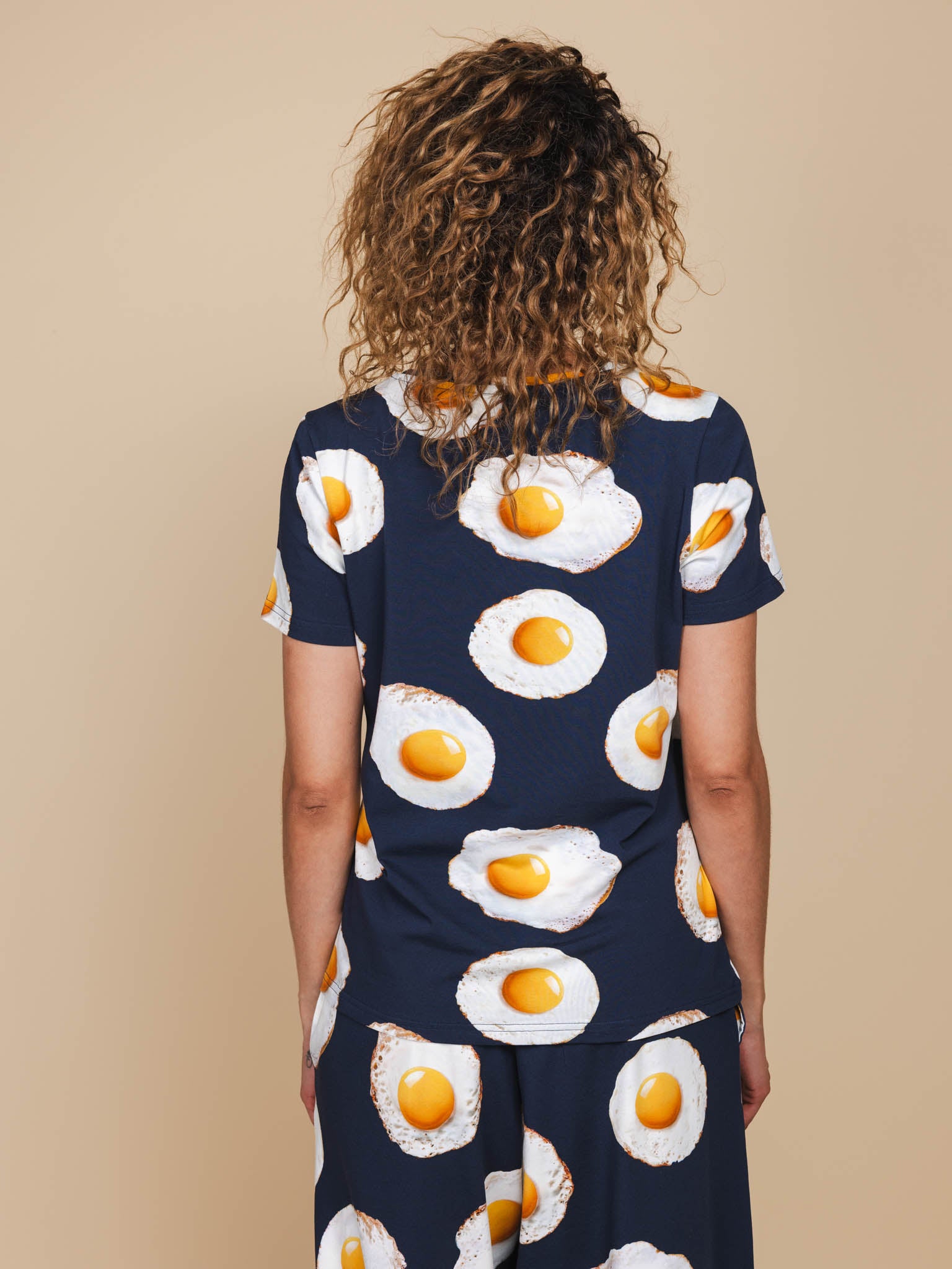 Set of T-shirt and wide pants, T-shirt with v-neck and short sleeves, wide leg trousers, elastic waistband, deep pockets, to wear day and/or night