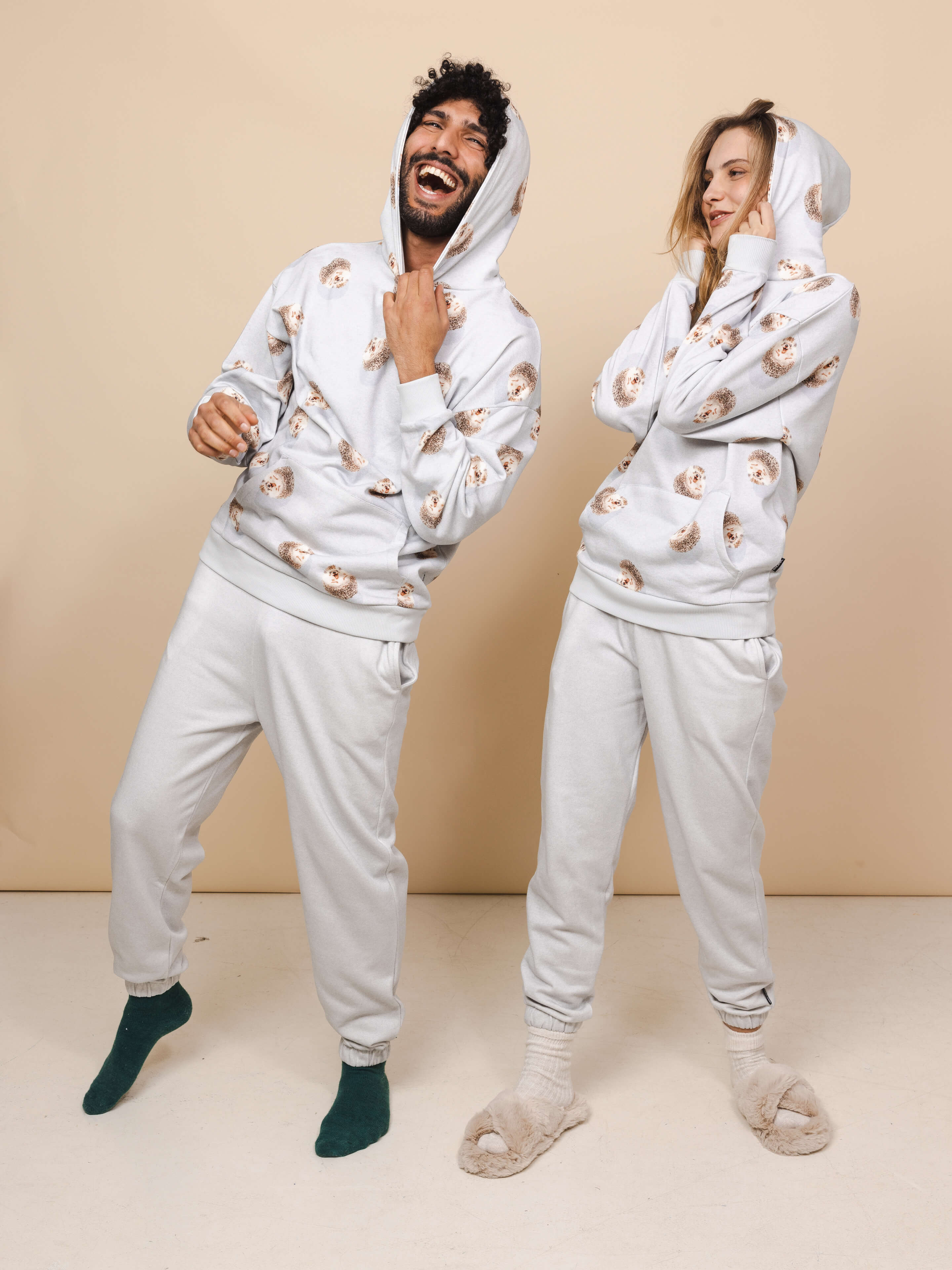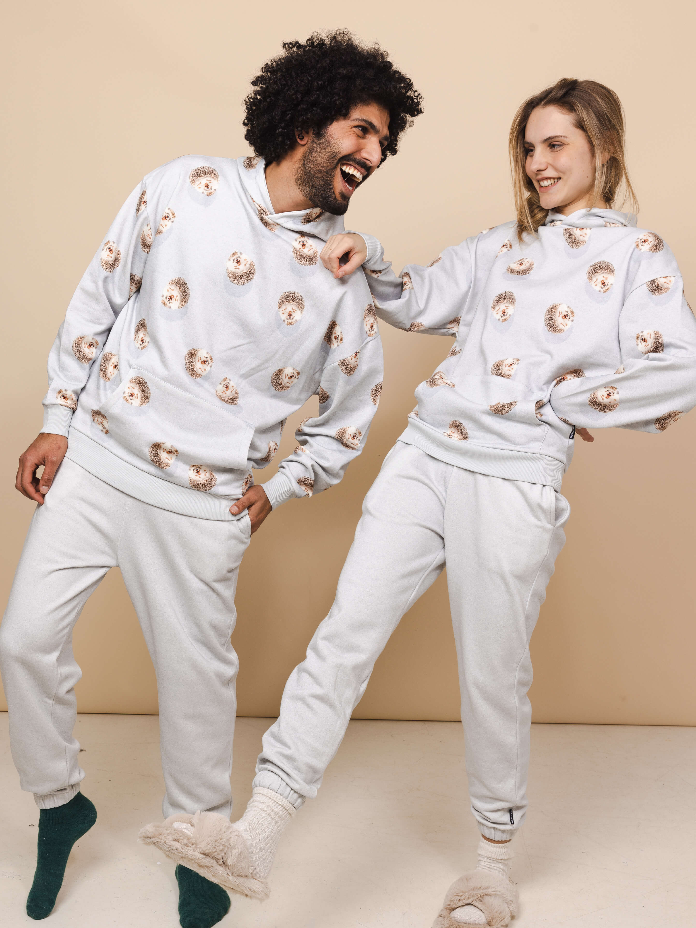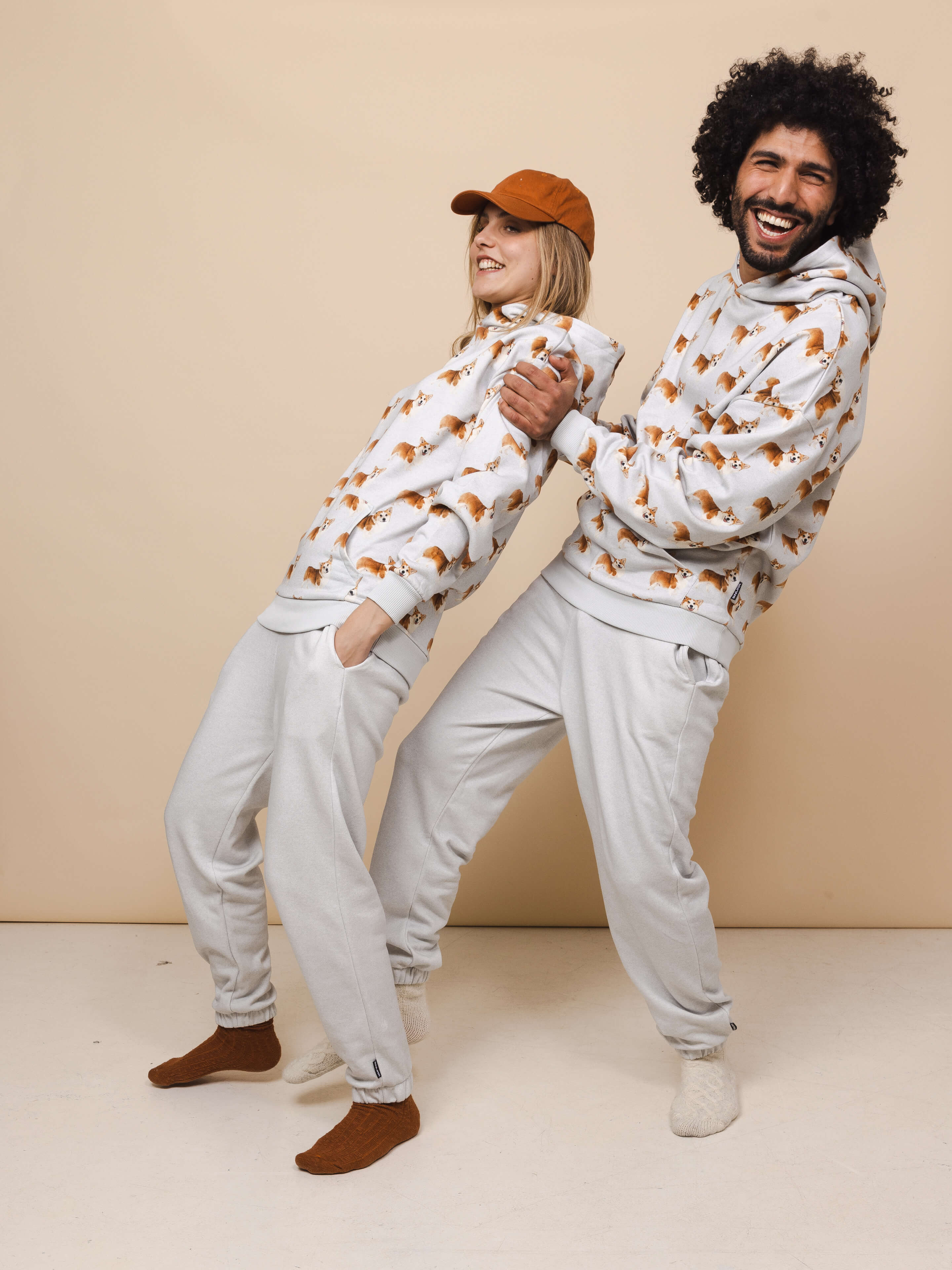 Wide, unisex jogging pants with soft fleece lining on the inside. Not suitable for sleeping but perfect to combine with our hoodies.