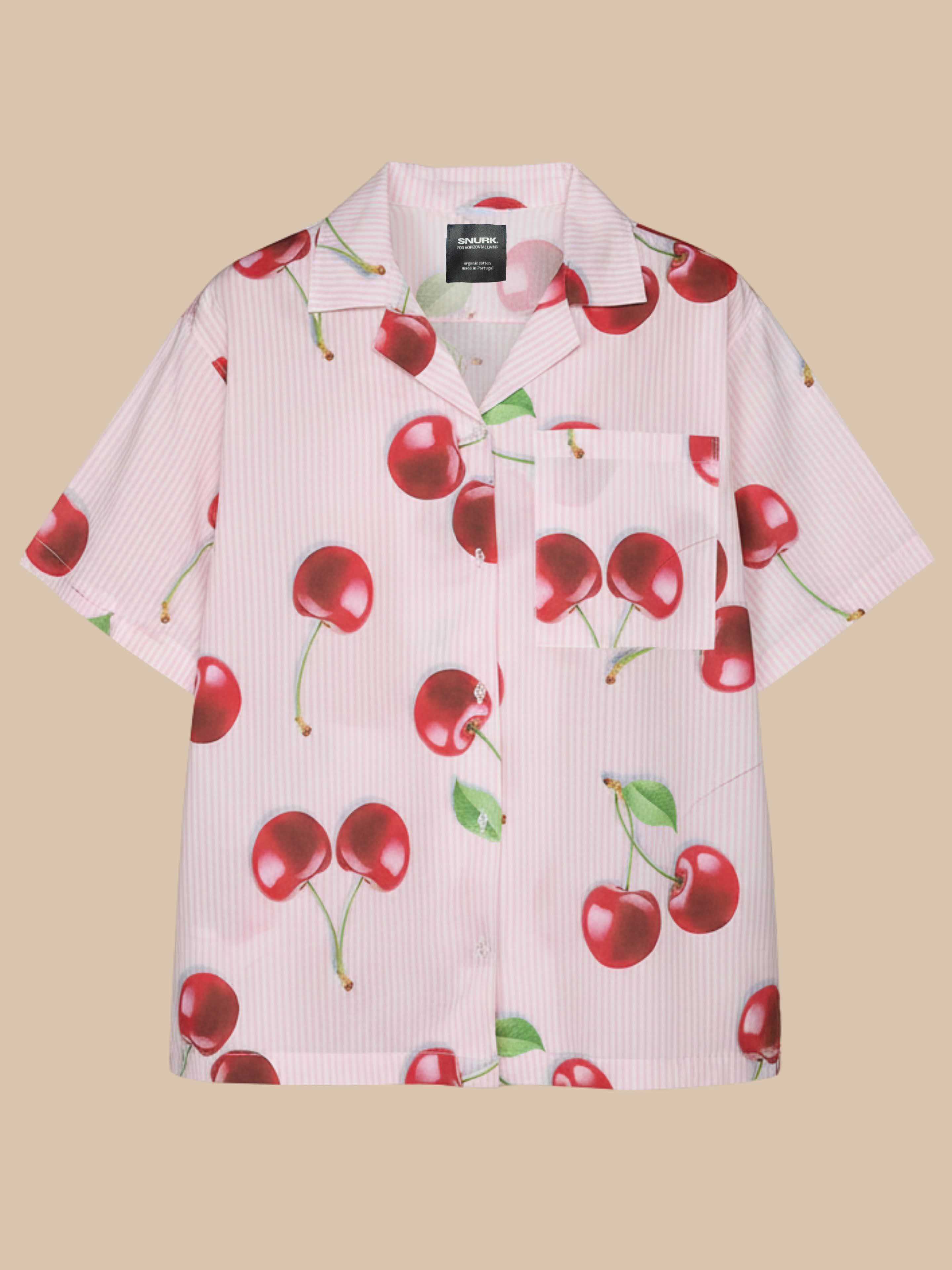 Relaxed, loose-fitting shirt with chest pocket, resort collar, and buttons down the front.
