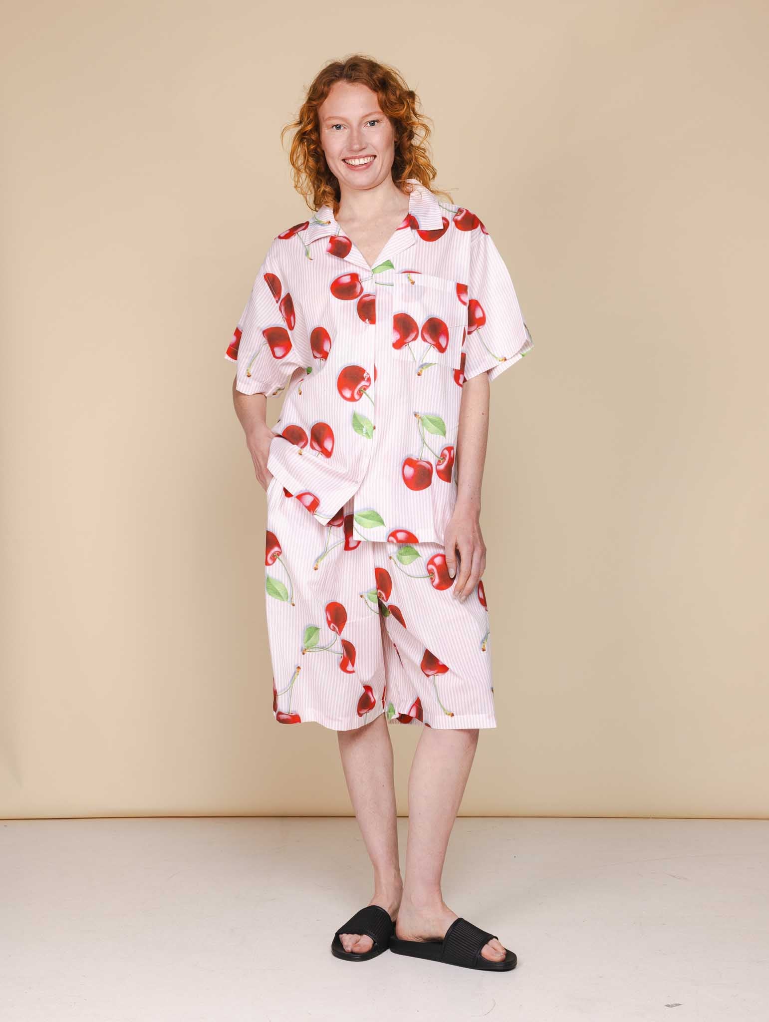 View the setOversized blouse, luchtig en gemaakt van 100% biologisch voile katoen. Deze blouse draag je om in te slapen, loungen of slenteren naar het terras . De wijdvallende blouse is one size en geschikt voor EU/DE maat 36-44 en is klaar voor alles wat jij vandaag niet hoeft te doen. Te combineren met de wide leg shorts.