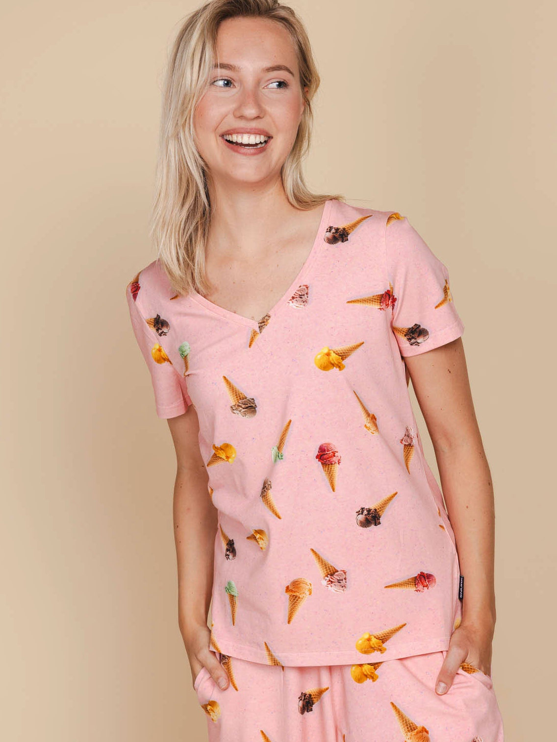 Ice Cream Cones V-neck T-shirt and Shorts set Women
