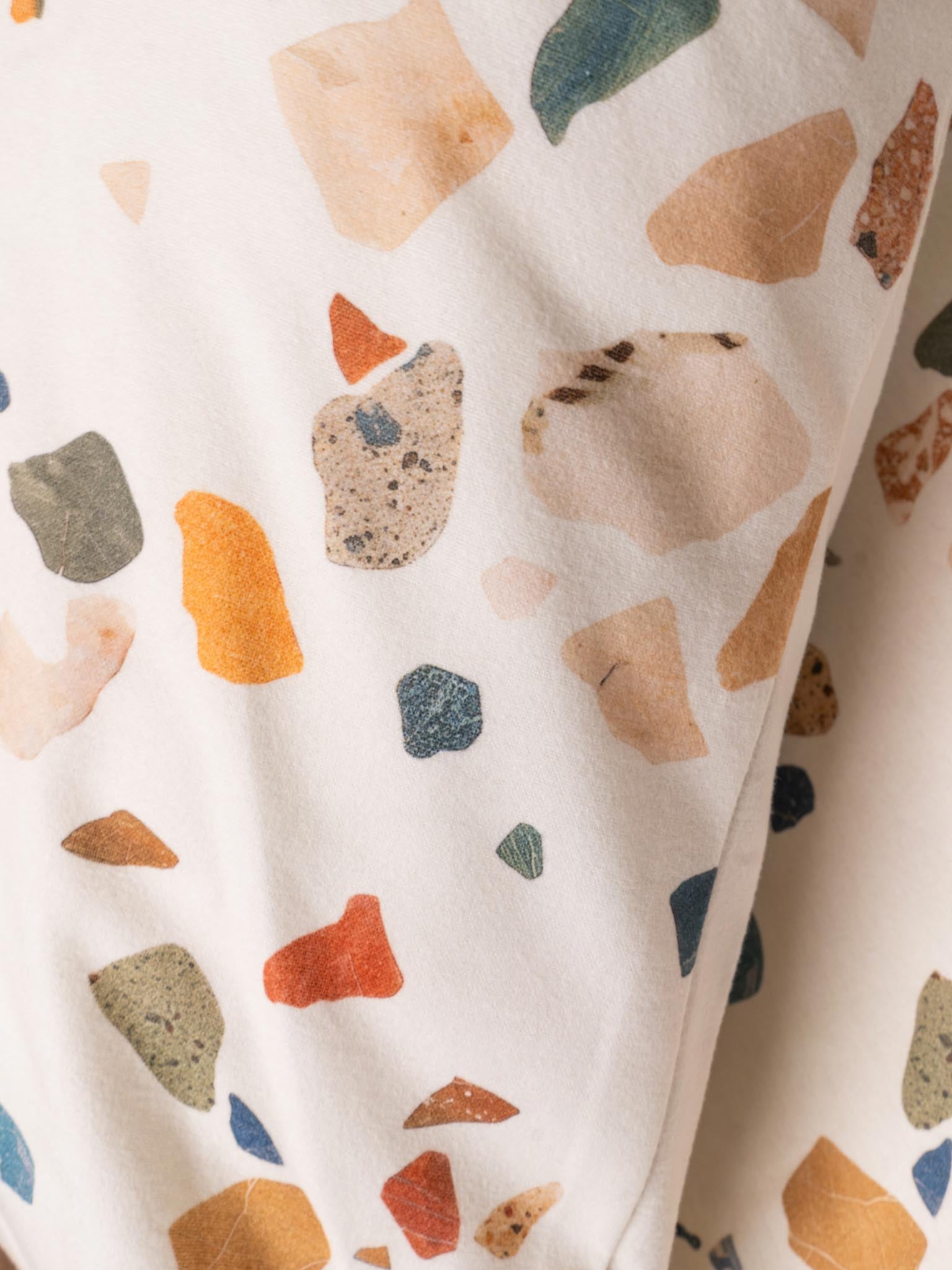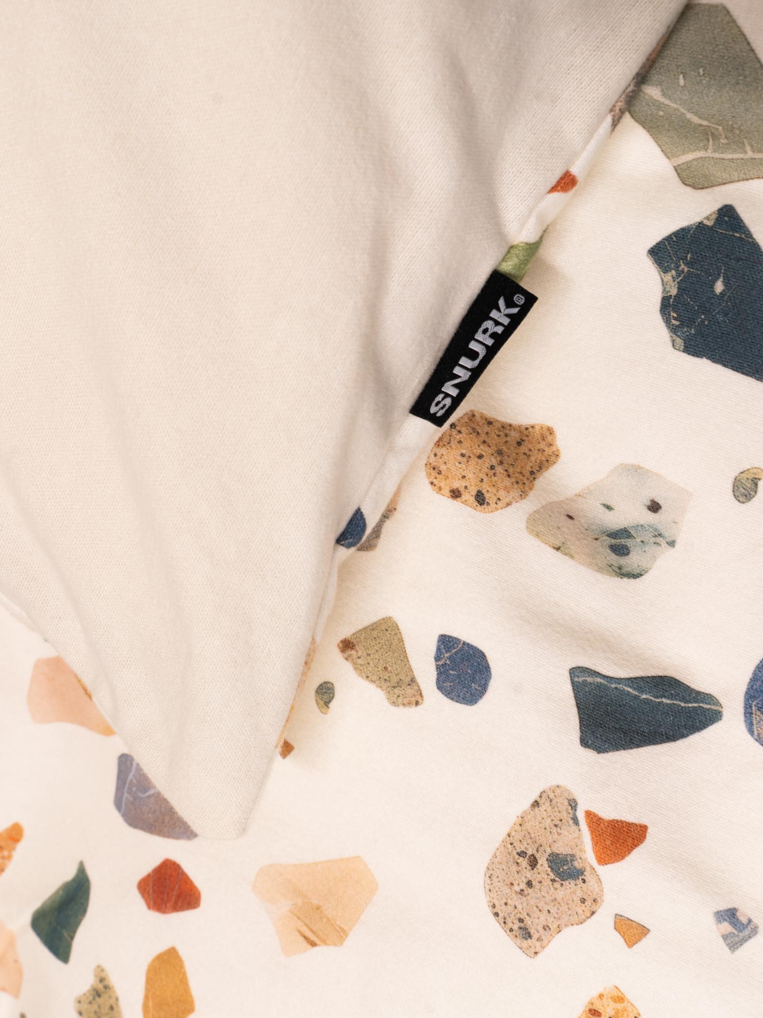 Terrazzo steen, maar dan zacht genoeg om in weg te dromen. Dit dekbedovertrek is het winnende idee van onze ontwerpwedstrijd en combineert robuust terrazzo met het comfort van ons biologische katoen. Wat een prachtig idee! Met dank aan Joke.