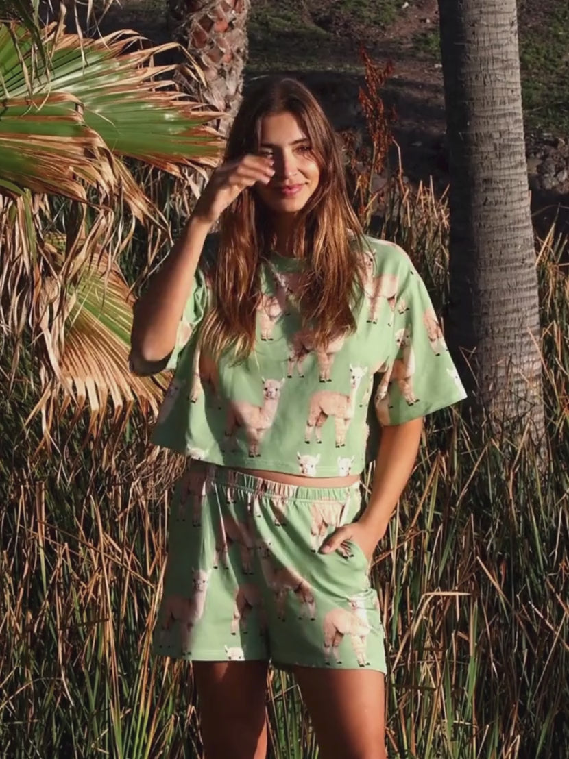 Dromen was nog nooit zo zacht. Onze alpacaprint op fris groen brengt instant rust, met deze lieve alpaca’s die met je mee loungen. Gemaakt van biologisch katoen dat bijna net zo zacht voelt als hun vacht. Aaien mag!