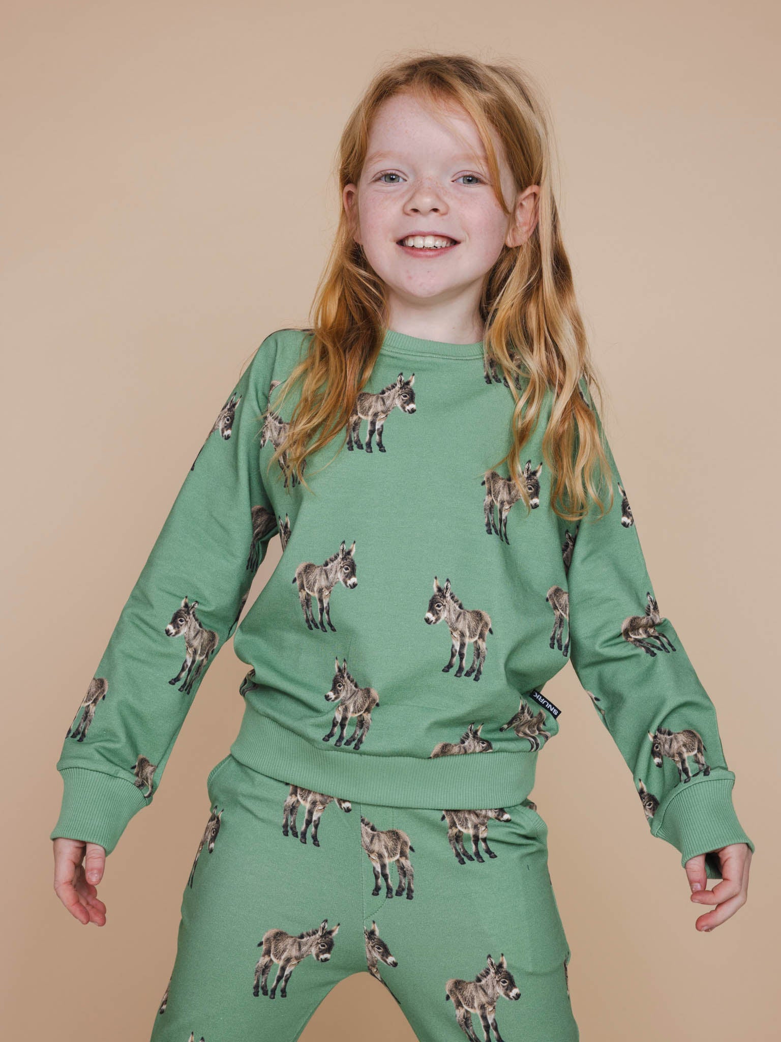 Kids sweater en broek met fotoprint gemaakt van 95% biologisch katoen, 5% elastaan.