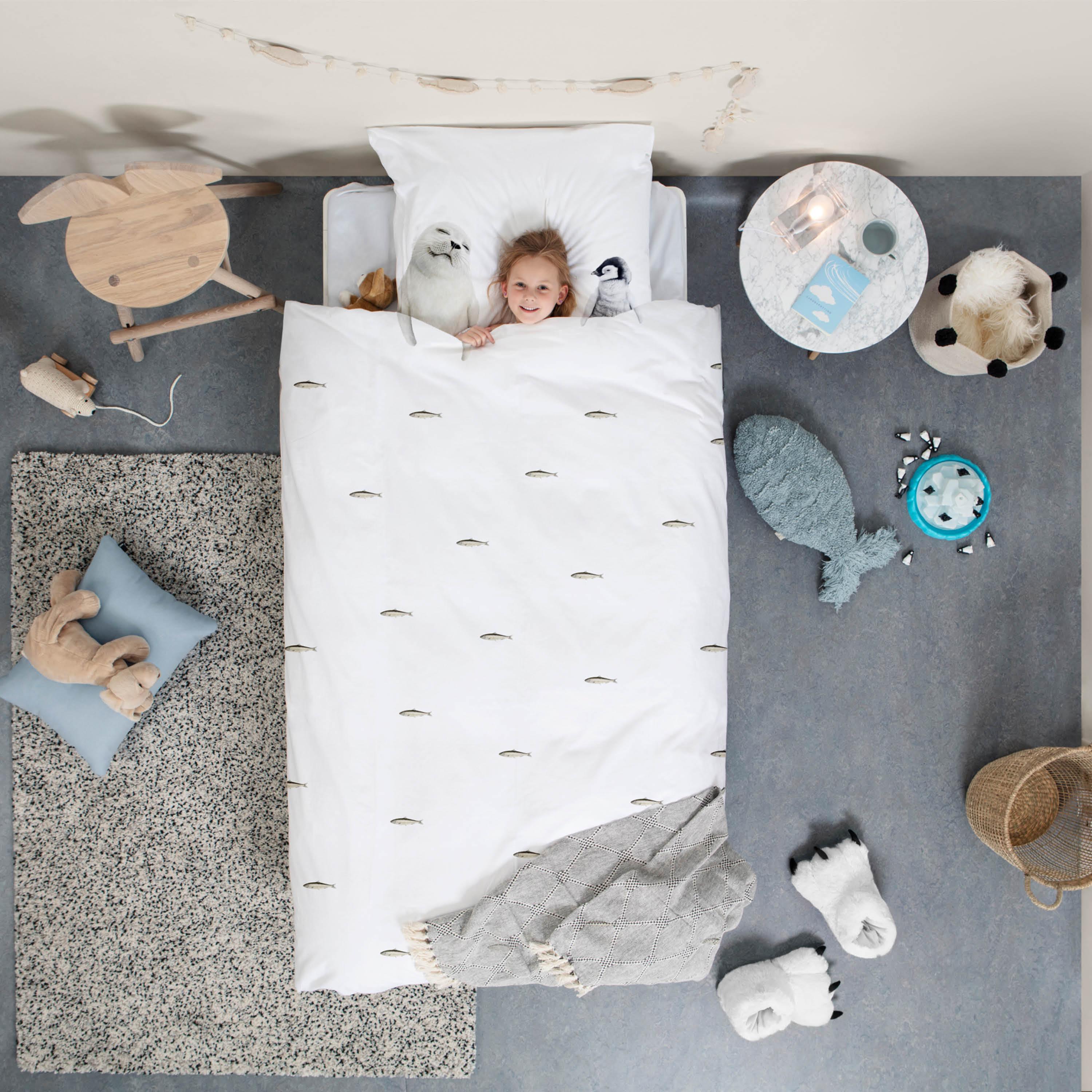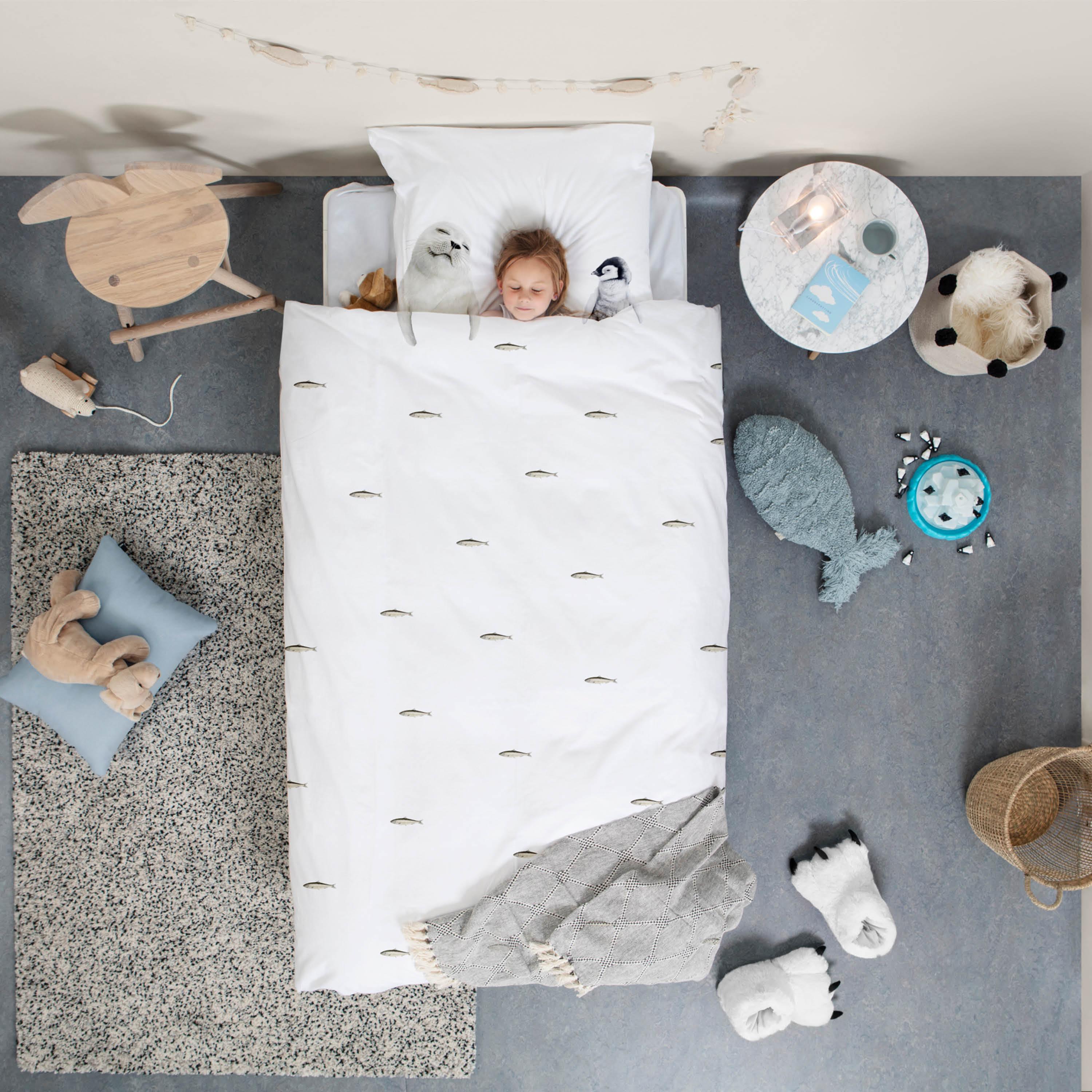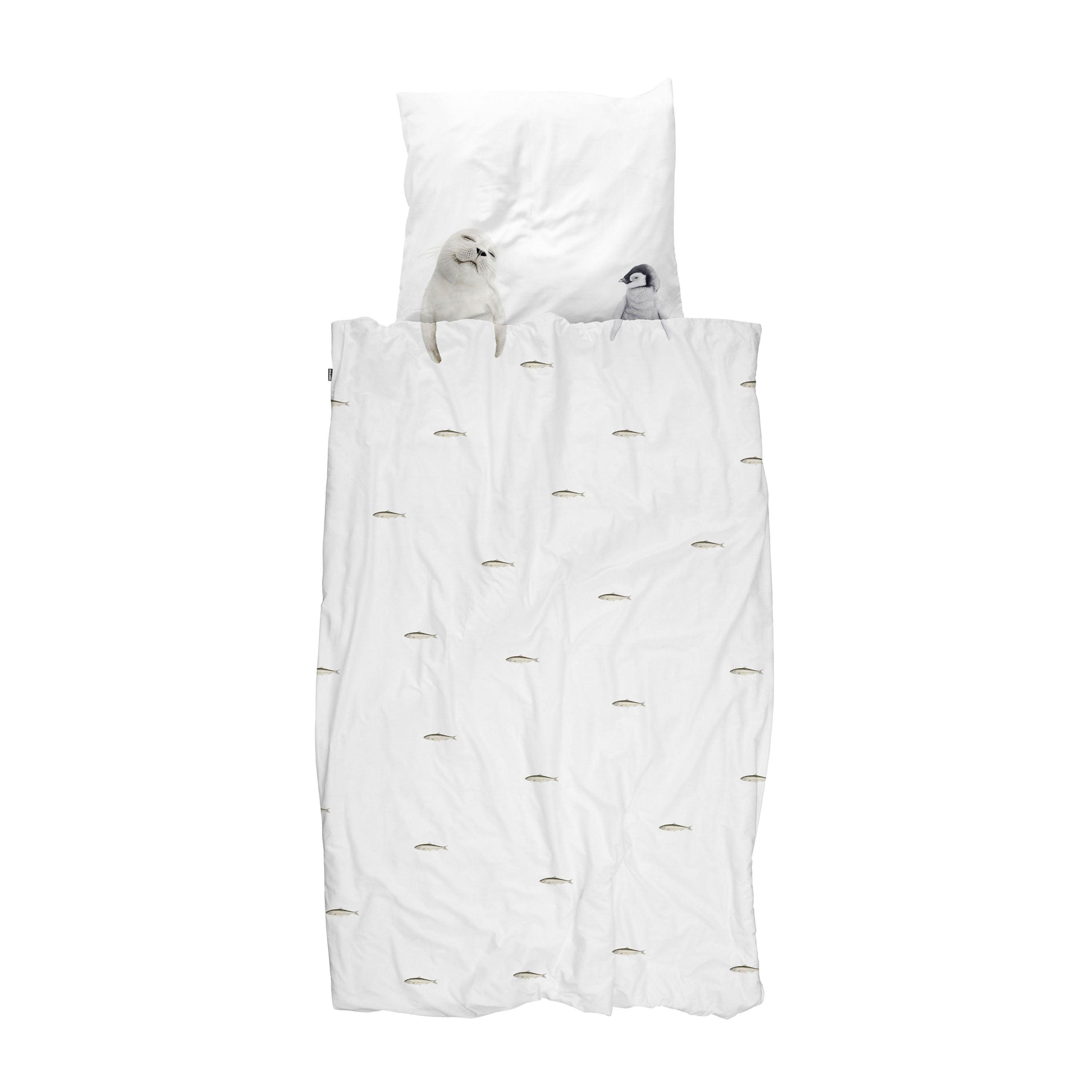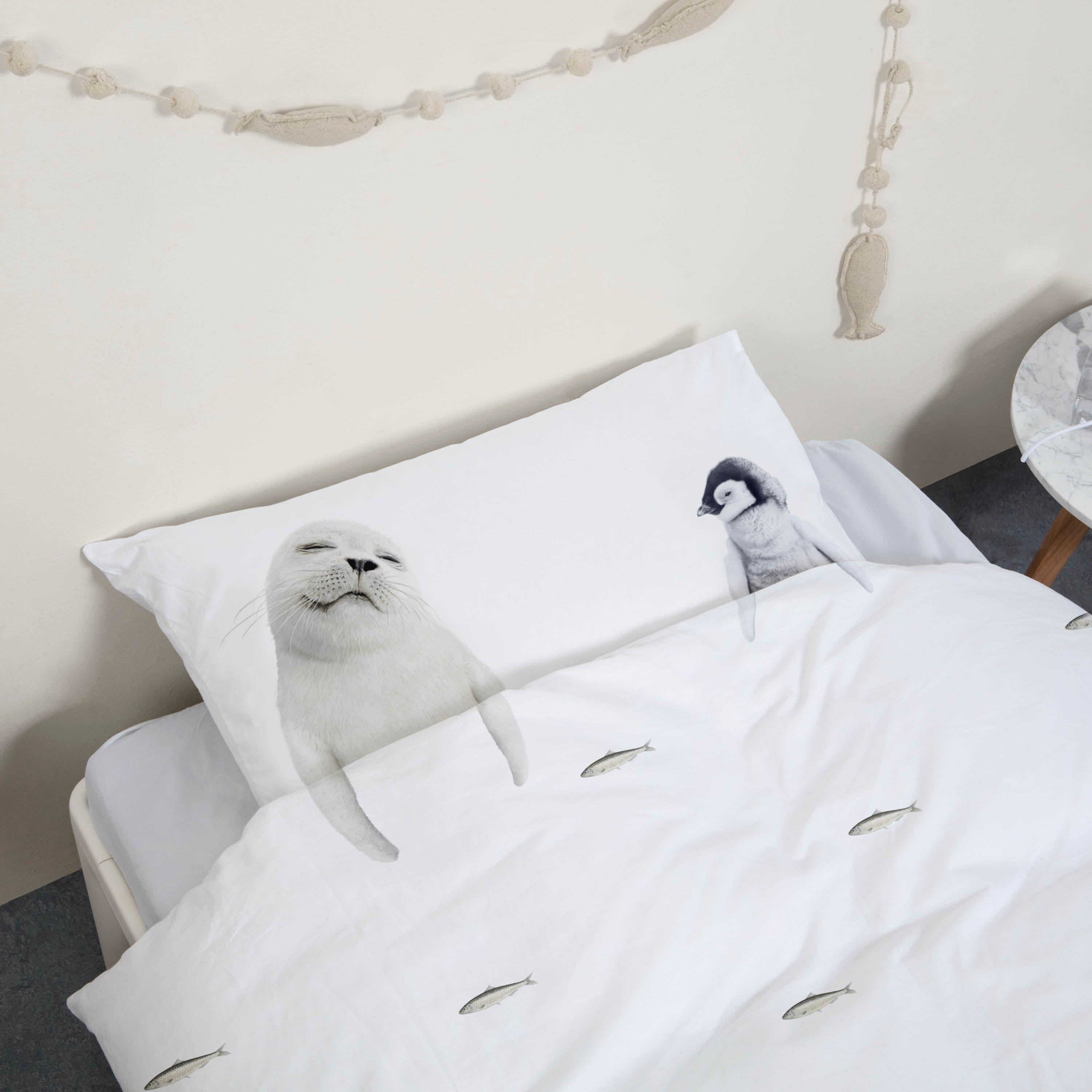 You don't have to travel to Antarctica to get close to baby seals and penguins. Because we have invited them over to your bed. As long as you keep the fresh fish coming, it looks like these two are not going anywhere soon. It's a sardine slumber party!