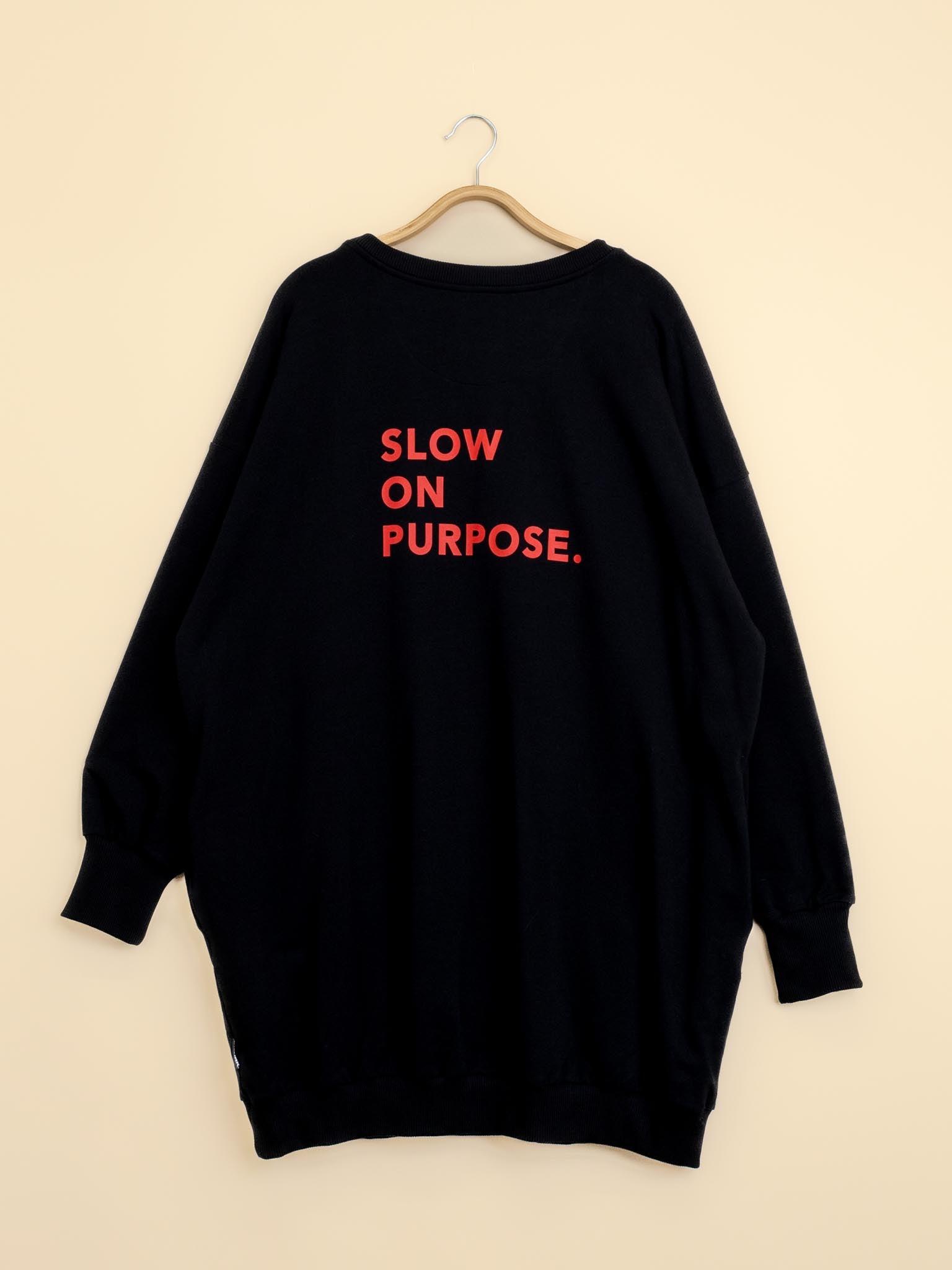 Niets zo luxe als je eigen tempo kunnen kiezen. In een wereld die altijd sneller lijkt te moeten, is dit een bewuste vertraging. ‘Slow on Purpose’ groot op je rug, als reminder voor jezelf en iedereen die achter je aan rent. Gemaakt van zacht biologisch katoen en ontworpen om comfortabel te vertragen. Verkrijgbaar in navy blauw, rood of lichtgrijs.