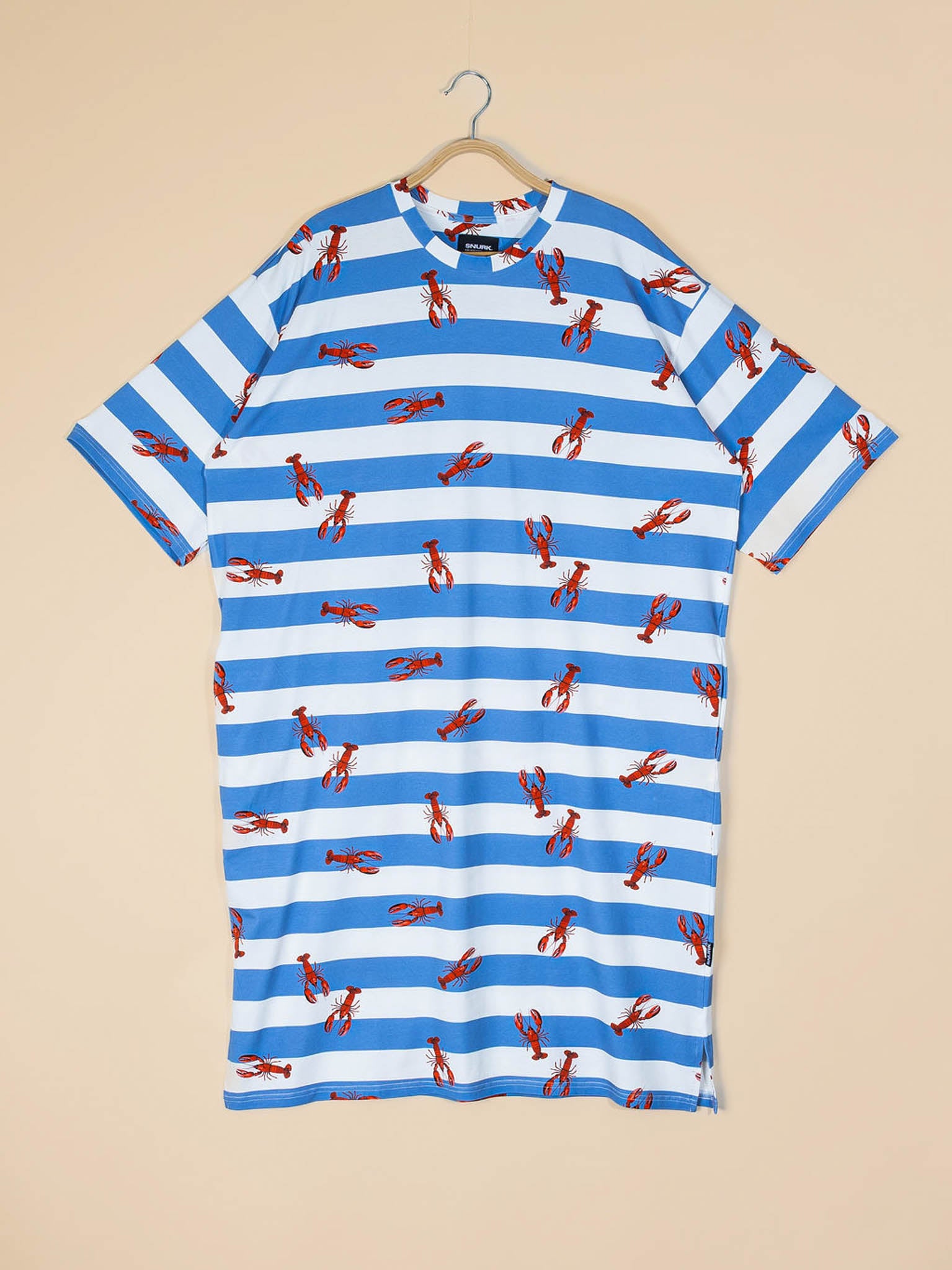 Voel de zon, ruik de zee. In deze blauw gestreepte outfit met rode kreeften stap je zo de Franse boulevard op. Je bent hiermee altijd comfortabel, luchtig en in vakantiestemming. Gemaakt van zacht en luchtig biologisch katoen.