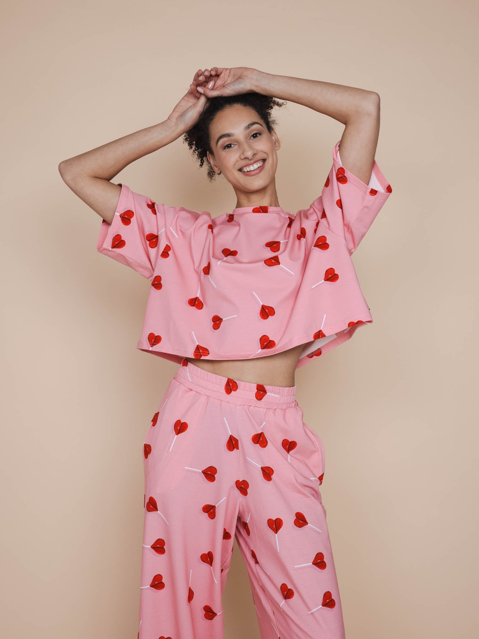 Lollipop Love Cropped T-Shirt en Wijde broek set Dames