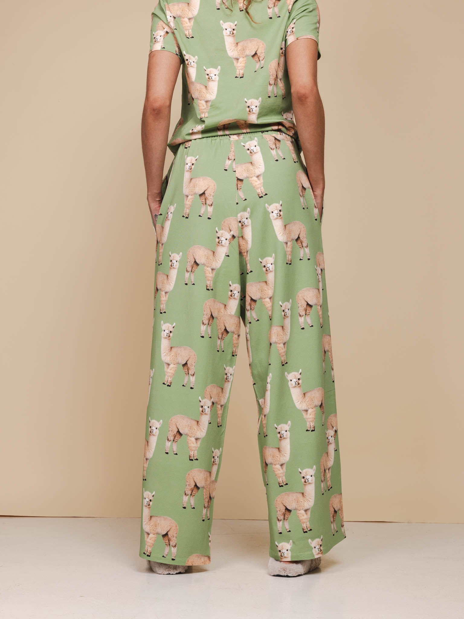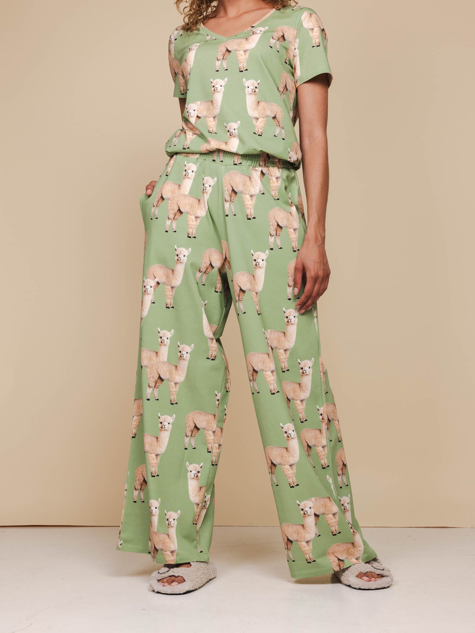 Bekijk de setWijde broek voor dames met fotoprint gemaakt van 95% biologisch katoen, 5% elastaan.