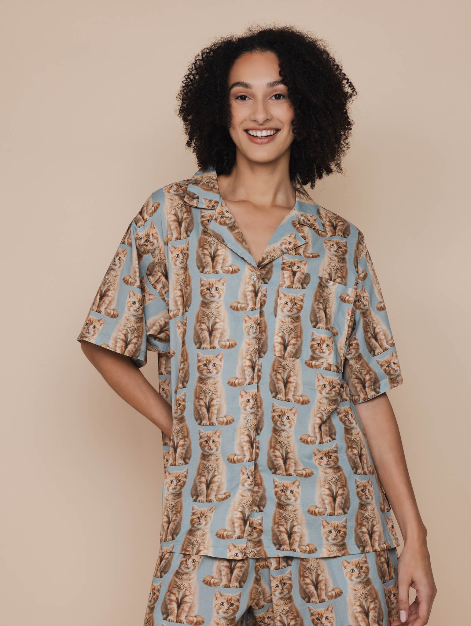 Deze button up set is een frisse en luchtige nieuwe SNURK-look, gemaakt van 100% ademend biologisch katoen met all over print.