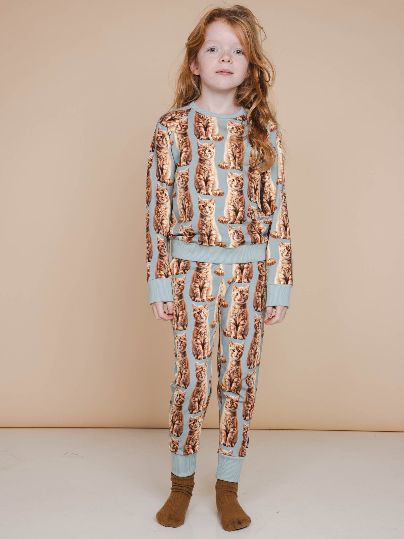 Kids sweater en broek met fotoprint gemaakt van 95% biologisch katoen, 5% elastaan.