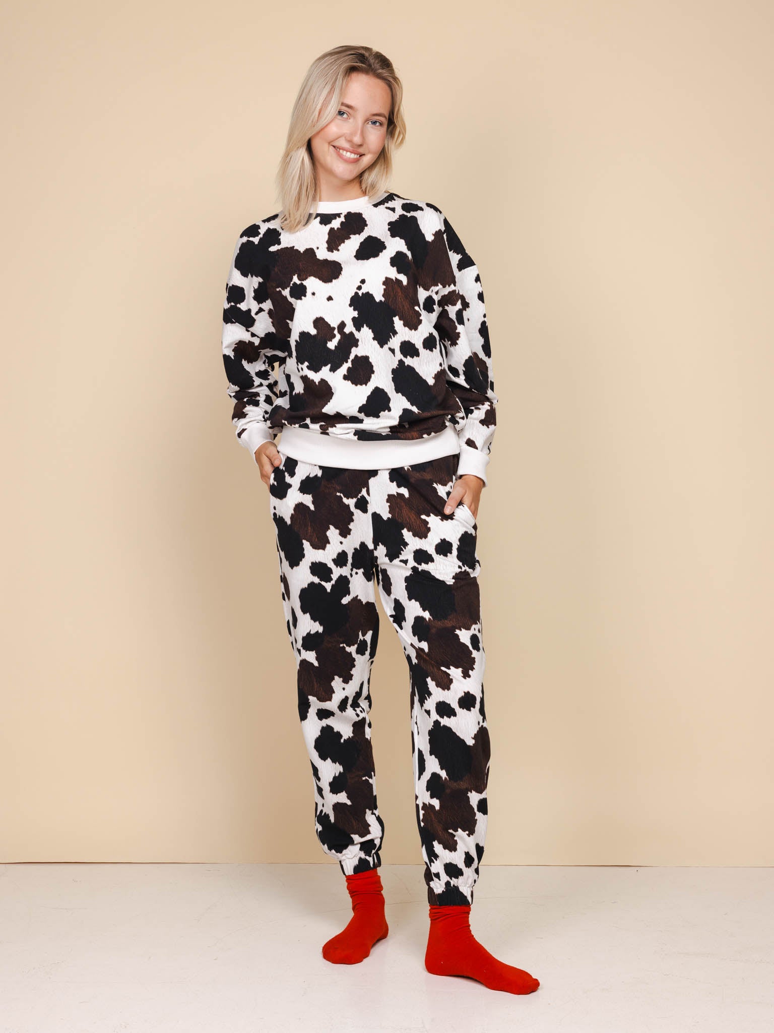 Moooove over, saaie outfits. Deze koeienhuid print is trendy, zacht, duurzaam en 100% diervriendelijk. Want hij is gemaakt van biologisch katoen. Draag ’m binnen, buiten of in bed. Met deze print geldt maar één regel: alles mag, niks mooooet.