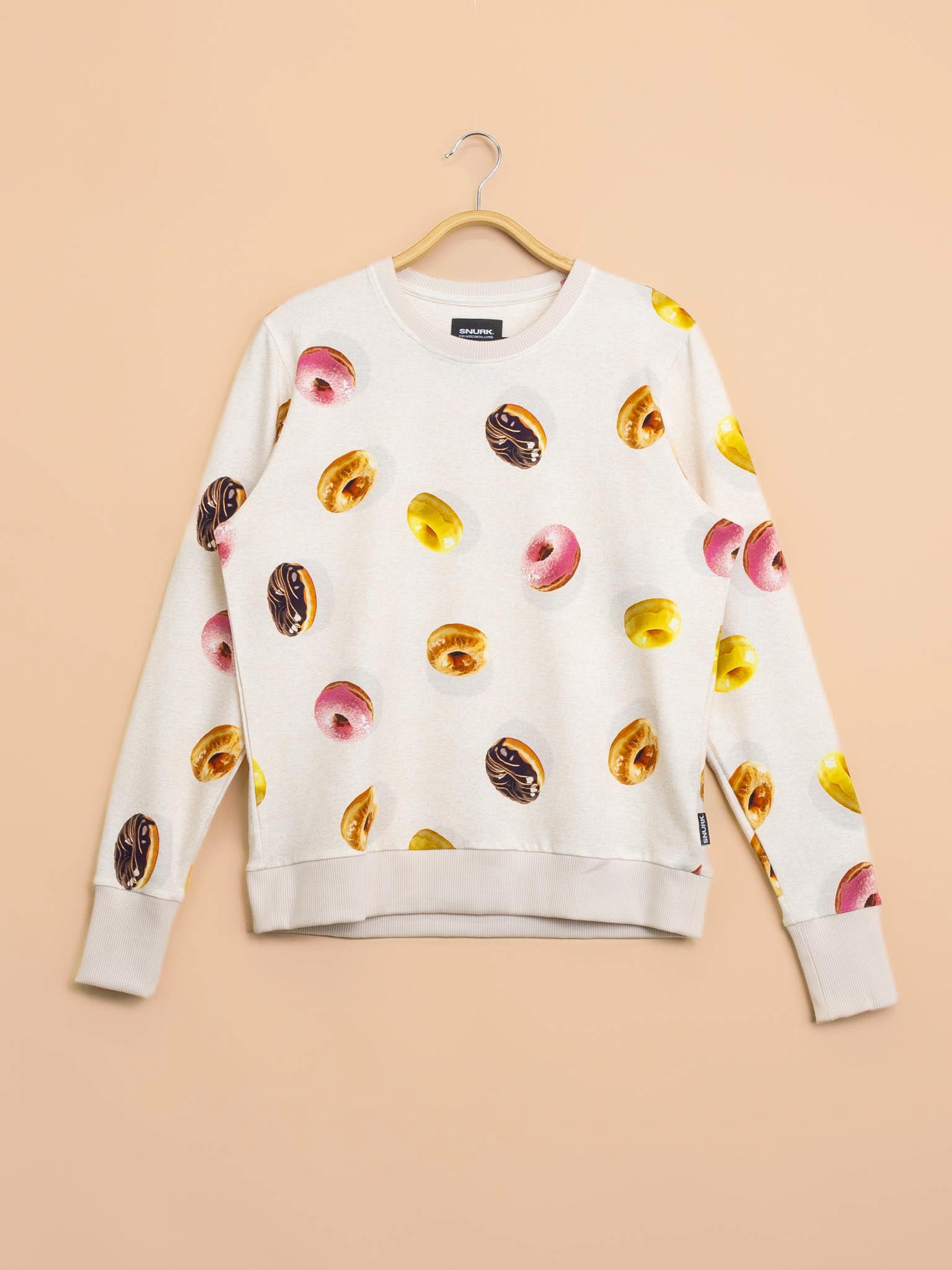Gefotografeerd alsof ze zo van de bakplaat komen, glanzende donuts waar je naar blijft kijken. Deze print serveert ze in alle soorten glazuur, verspreid over een romige beige achtergrond. Zoet, zacht & zondags, het ultieme recept voor een vrolijke dag.