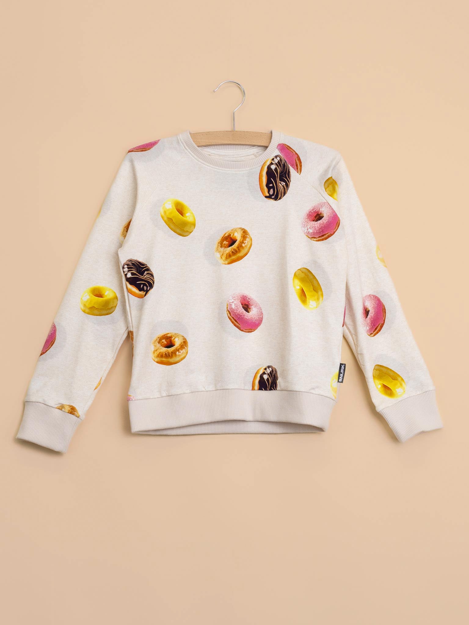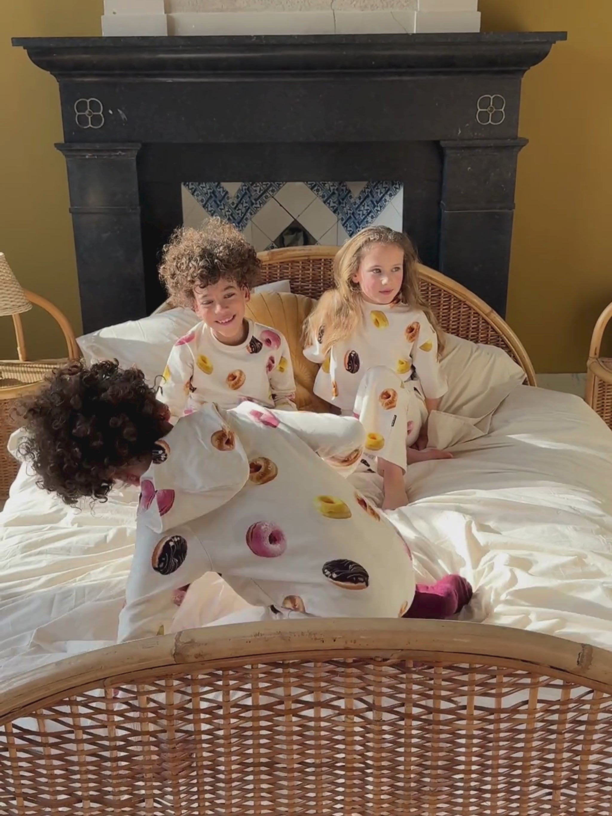 Gefotografeerd alsof ze zo van de bakplaat komen, glanzende donuts waar je naar blijft kijken. Deze print serveert ze in alle soorten glazuur, verspreid over een romige beige achtergrond. Zoet, zacht & zondags, het ultieme recept voor een vrolijke dag.