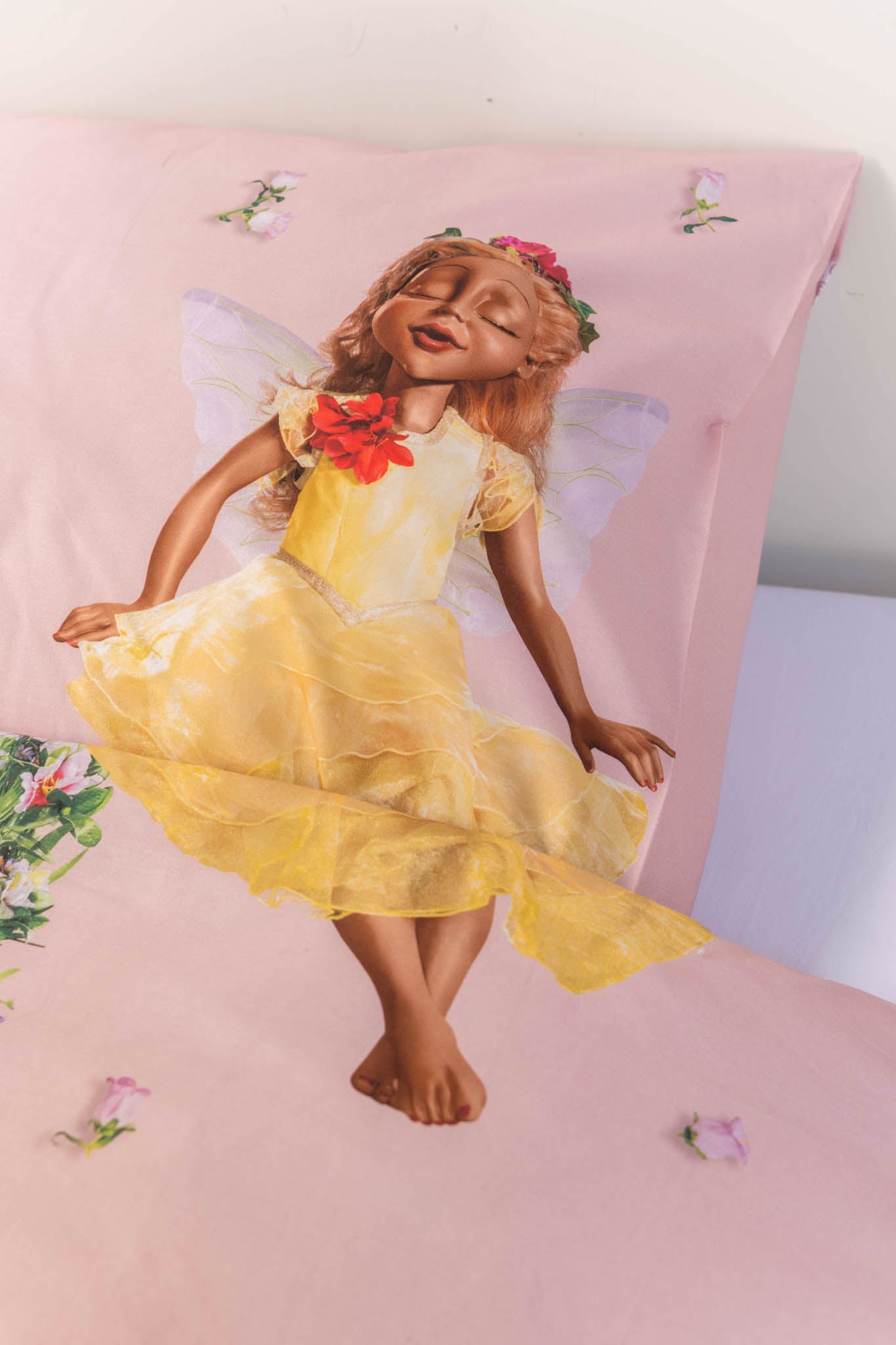Stap in Droomvlucht, gewoon vanuit je slaapkamer. Dit zachtroze dekbedovertrek vol bloemetjes neemt je mee naar de magische wereld van je favoriete Efteling-attractie. Ga maar liggen tussen de elfjes, we gaan vertrekken.