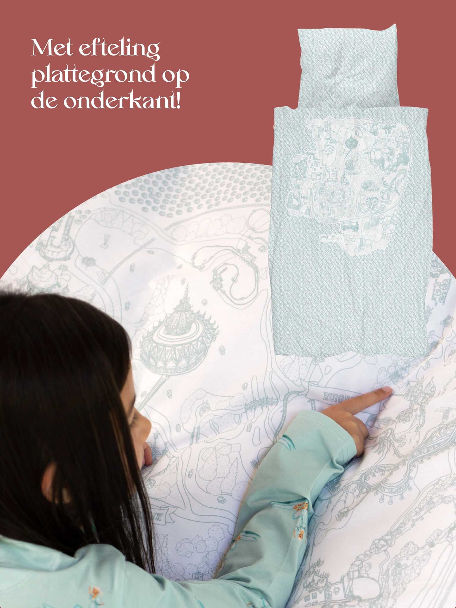 ✨ Binnenin het dekbed vind je de Efteling-plattegrond, en in de kussensloop een geheime QR-code die de ride tot leven brengt.