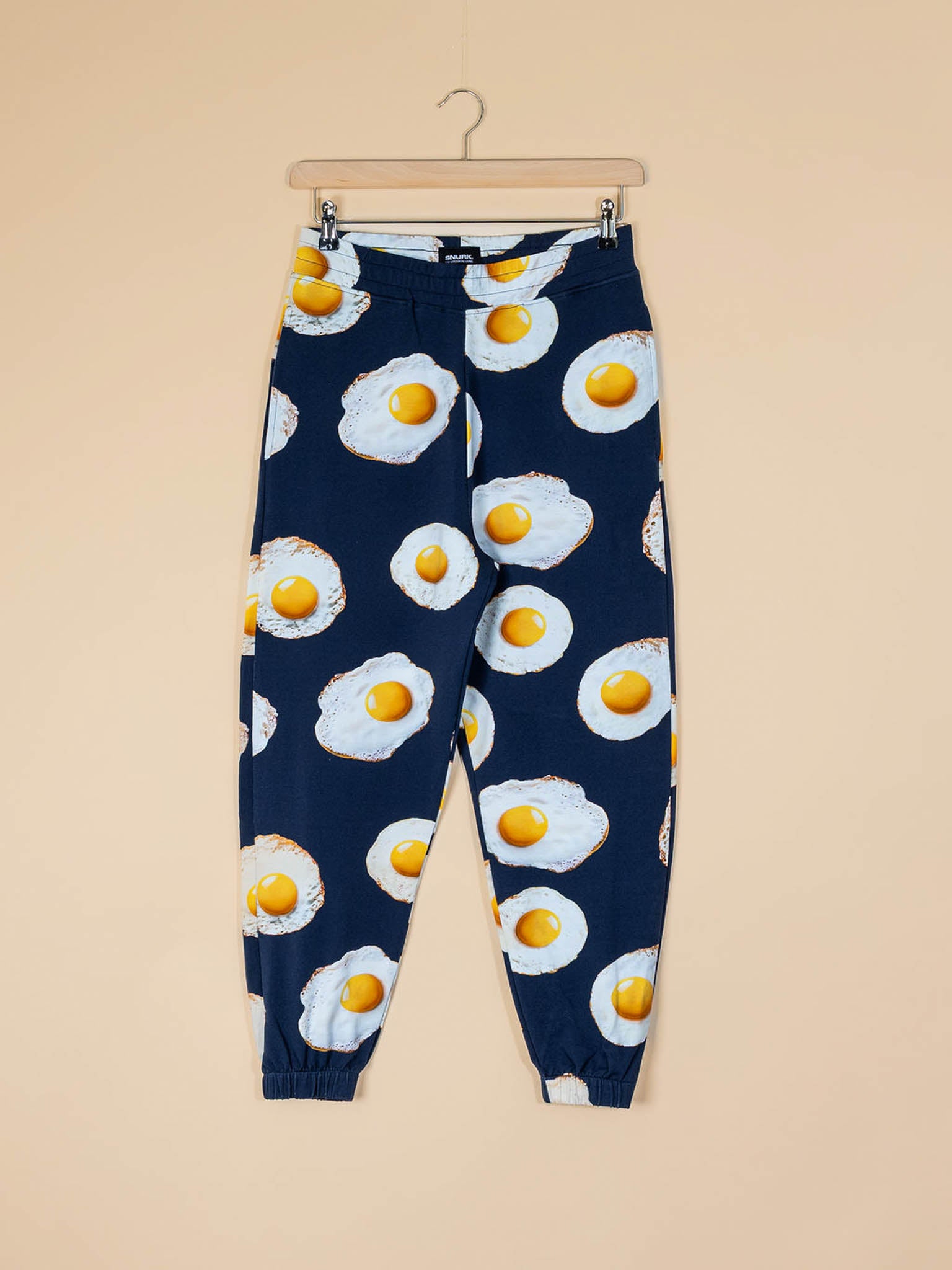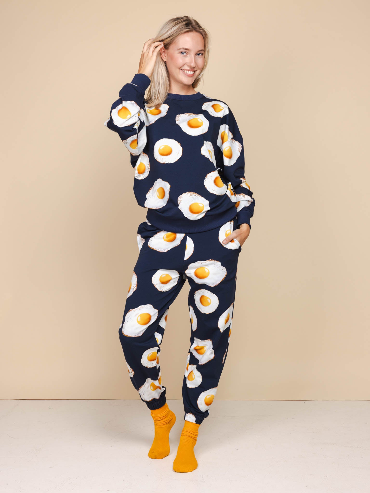 Lekker slapen wordt voortaan een eitje. Onze gebakken eieren print in navy blauw is gemaakt van superzacht biologisch katoen: vrije-uitloop-kwaliteit voor je huid. Zacht, comfy en met een print waar je vrolijk van opstaat. Met deze SNURK zit én lig je altijd gebakken.
