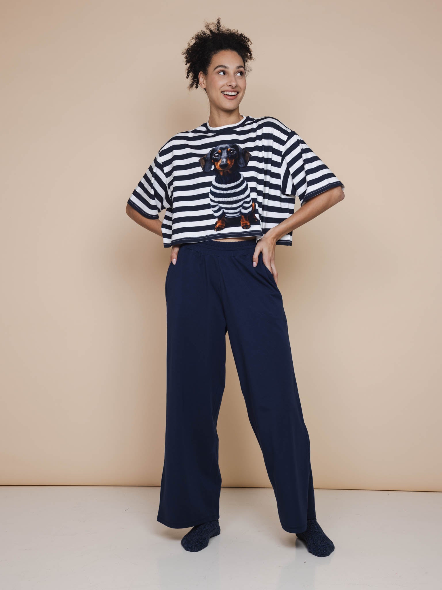 Maak kennis met Pierre, onze stijlvolle teckel met een neus voor mode. Zijn favoriete look? Een klassieke trui met Bretonse streep, net als jij. Toeval? Mais non! Of jullie nu samen gaan flaneren of je liever samen oprolt op de bank: Pierre is overal voor in. Très chic. Très comfortabel. Très SNURK.