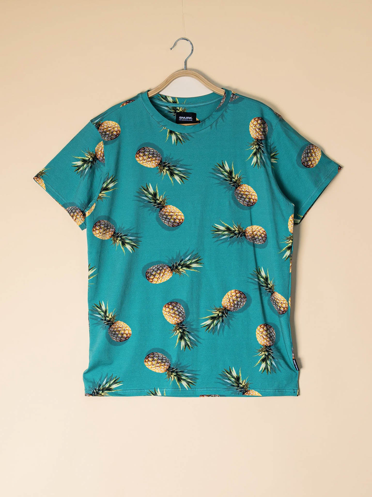 Deze tropische ananas print op diep teal groen is jouw dagelijkse dosis zomer vitamine. Zo relaxed en comfortabel, het voelt meteen alsof je op vakantie bent. Zullen we vanavond weer gaan barbecueën?