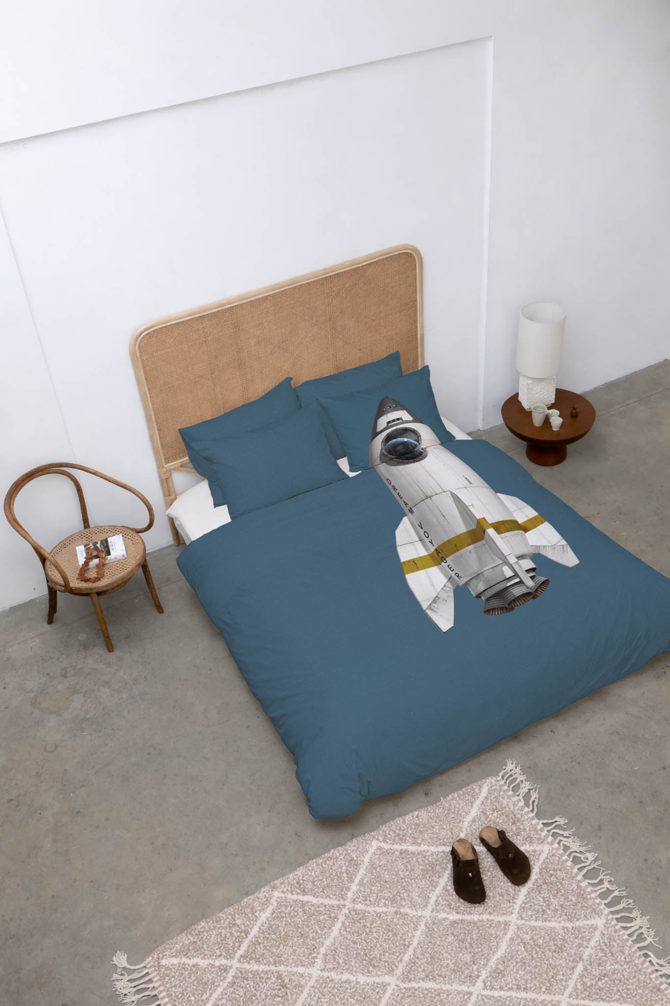 Dekbedovertrek met raketprint gemaakt van 100% biologisch katoen.